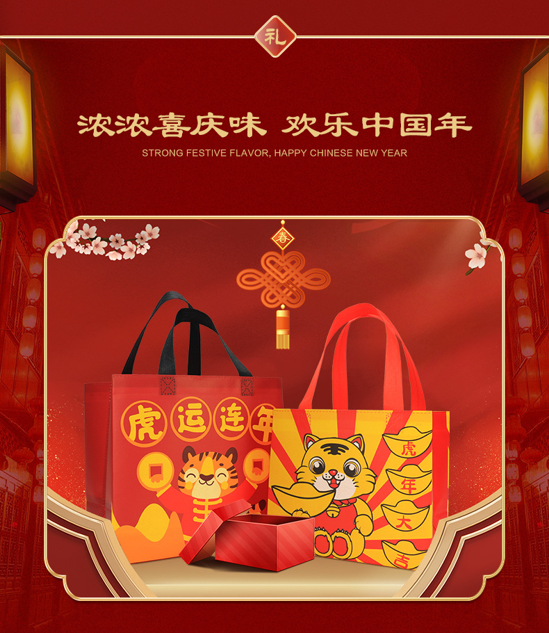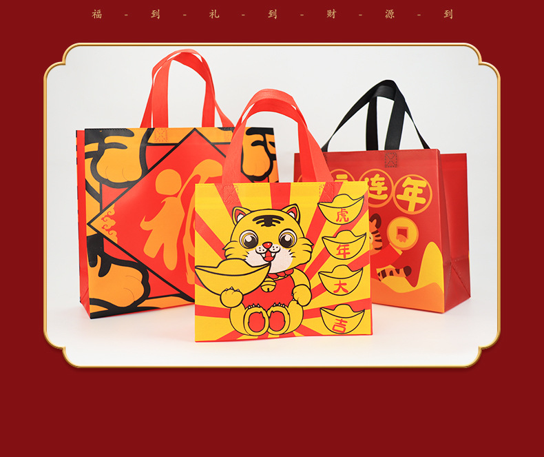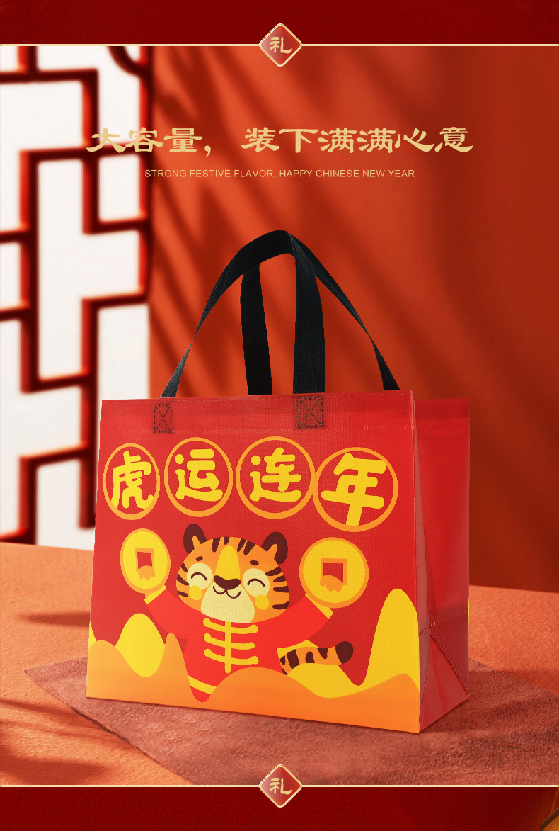 Huimei 25 años nueva bolsa de regalo no tejida para el año de la serpiente, bolsa de bendición, regalo portátil, bolso laminado rojo