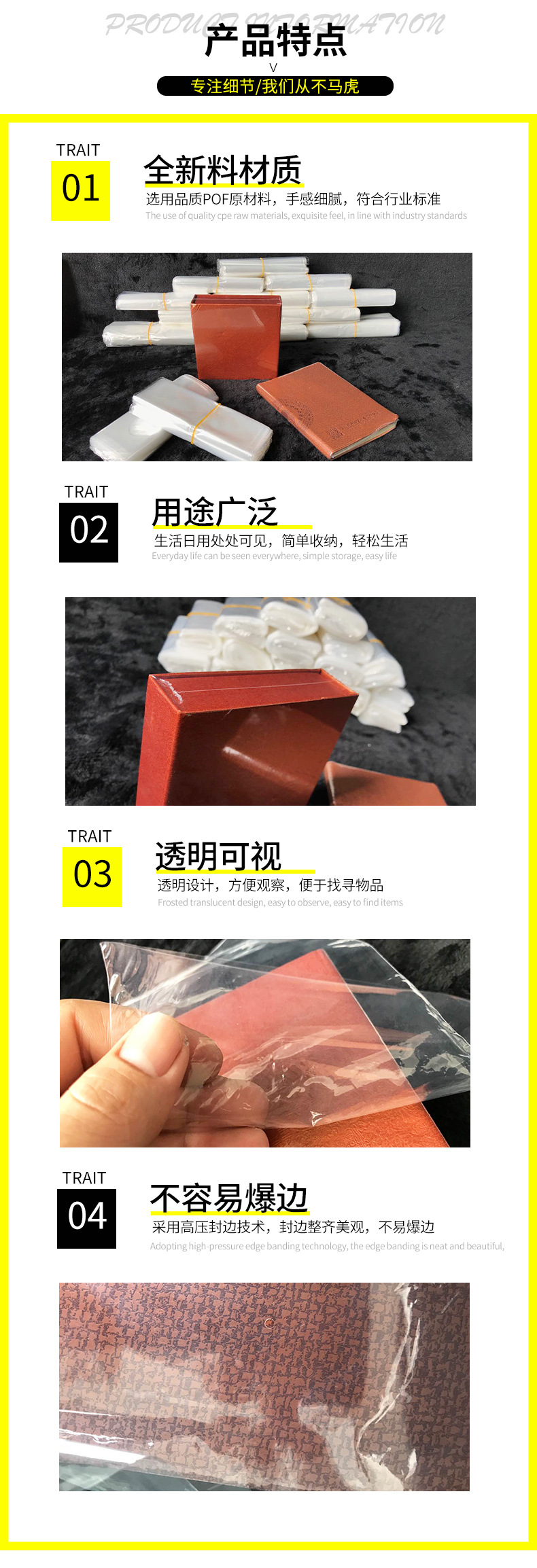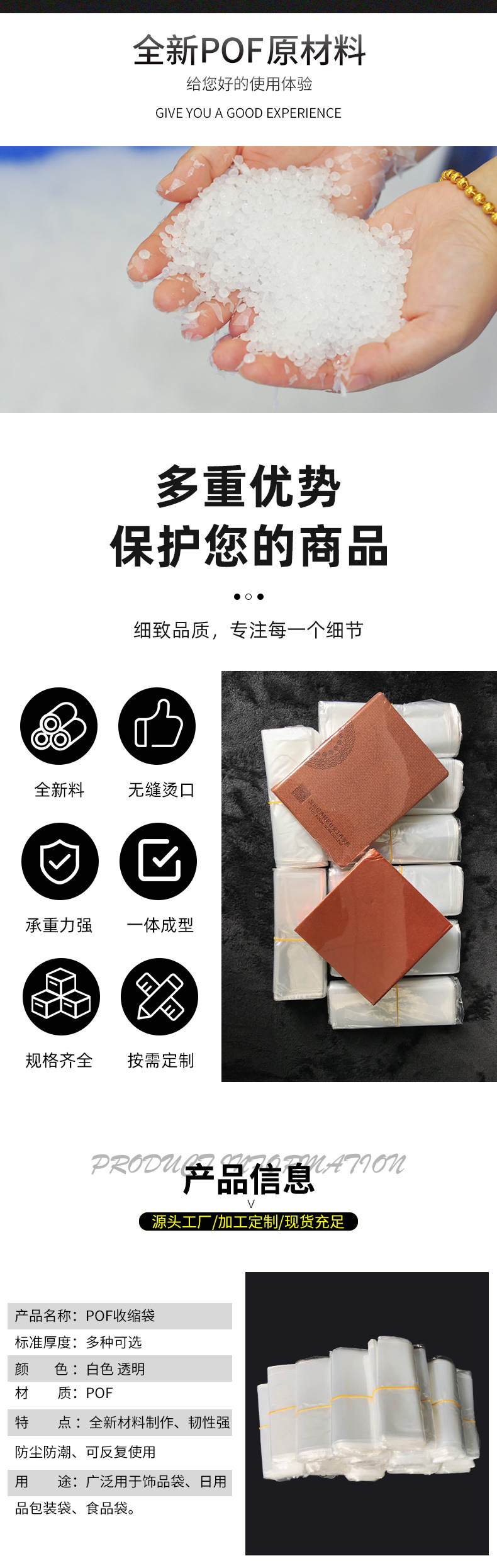 En stock POF bolsa de película Termocontraíble POF película Termocontraíble protección del medio ambiente bolsa retráctil caja embalaje transparente sellado película de sellado de plástico