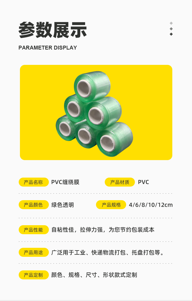 PE empaquetado película estirable película estirable pvc verde 8cm autoadhesivo película de alambre película de injerto película de embalaje 10cm