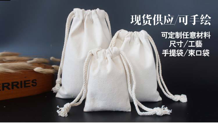 Bolsa de cordón de algodón pequeña bolsa de tela bolsa de cordón pintada a mano DIY bolsa de protección del medio ambiente bolsa de arroz bolsa de almacenamiento de tela de algodón