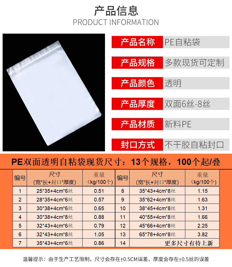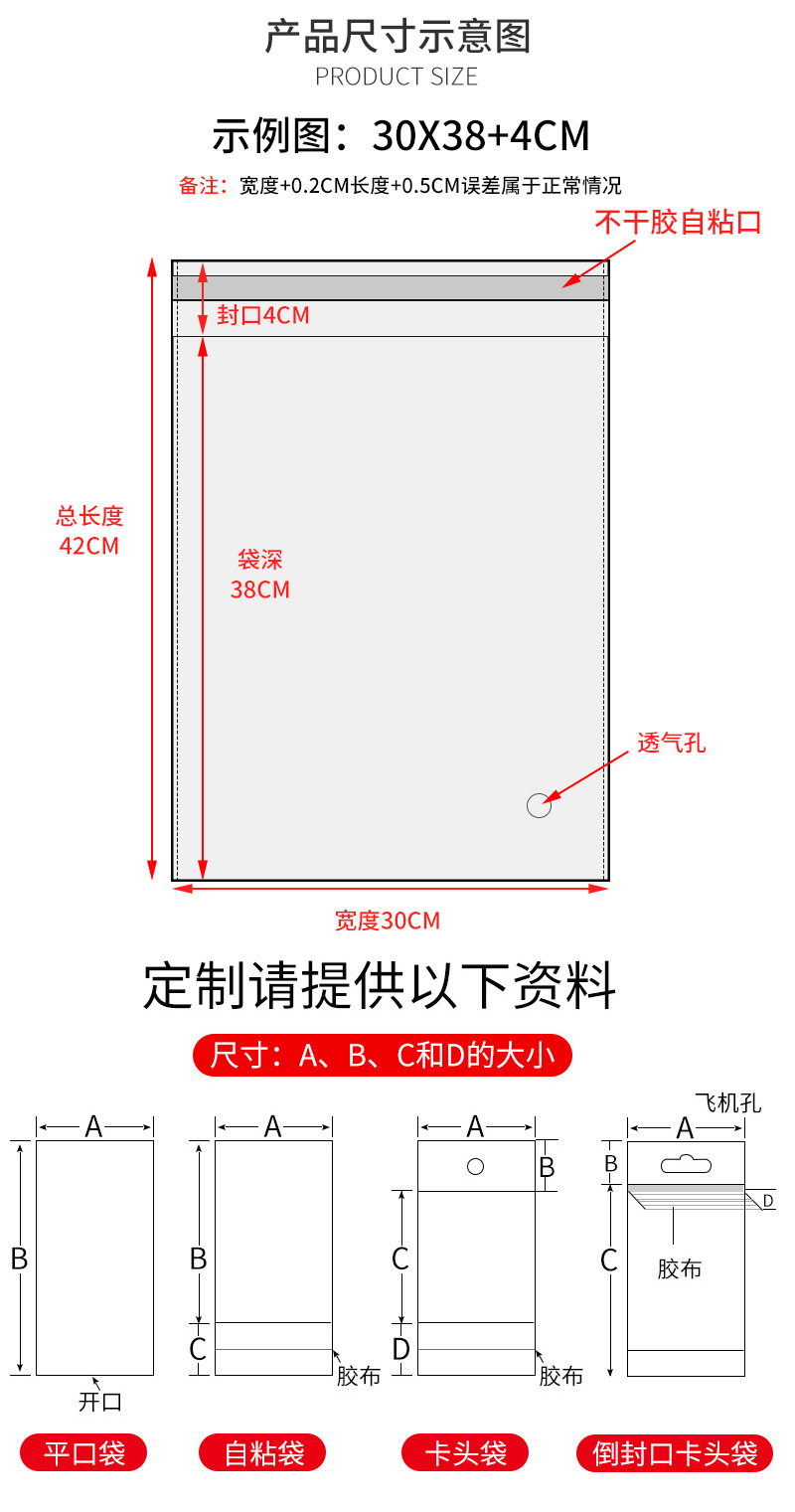 | Artículo No. | Plástico PE, OPP, CPE personalización bolsa autoadhesiva |