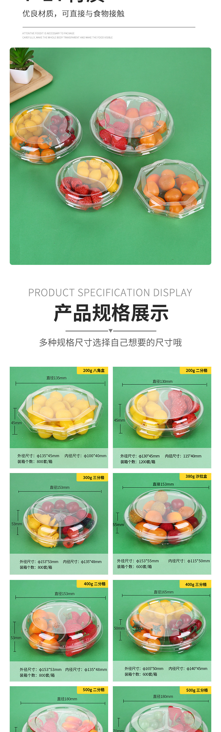 Cajas desechables para frutas, cajas para cortar frutas frescas, cajas para ensaladas, cajas de embalaje, platos divididos, cajas transparentes para frutas y verduras, cajas para fresas al por mayor