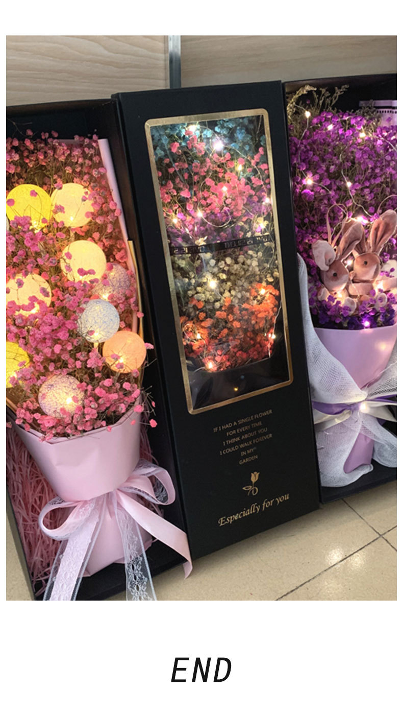 Gran cantidad y excelente precio en stock al por mayor chino Día de San Valentín flor material de embalaje ramo Paquete de regalo LED Cadena de luz de cristal