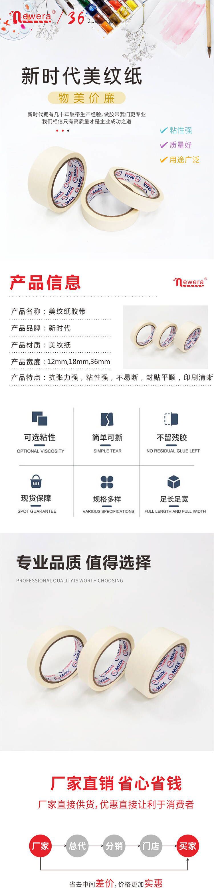 Cinta de papel enmascaramiento blanco medio y alto Adhesivo de pared de papel crepé sin costura que cubre la decoración de papel enmascarado triturado al por mayor