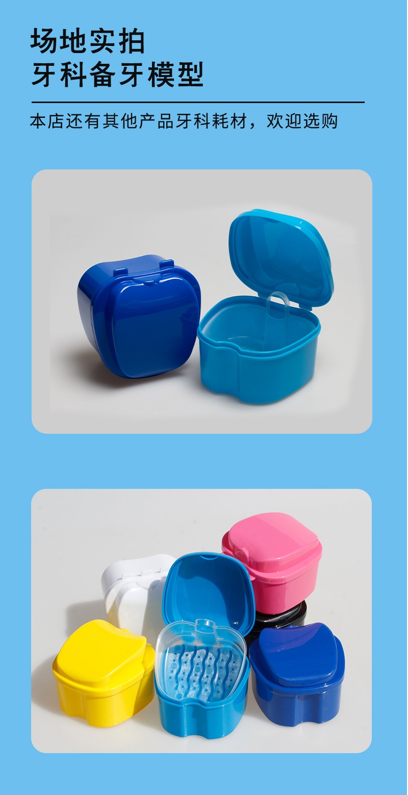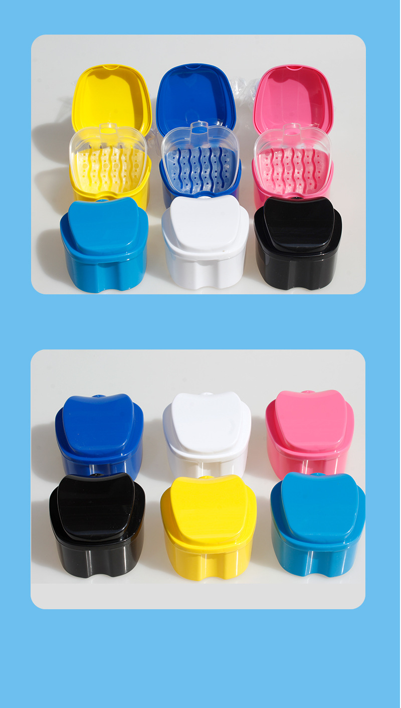 Caja de dientes Caja de dientes de manzana Caja de dentaduras de plástico Caja de dentaduras molares Caja de retención Caja de PP Caja de dentaduras postizas