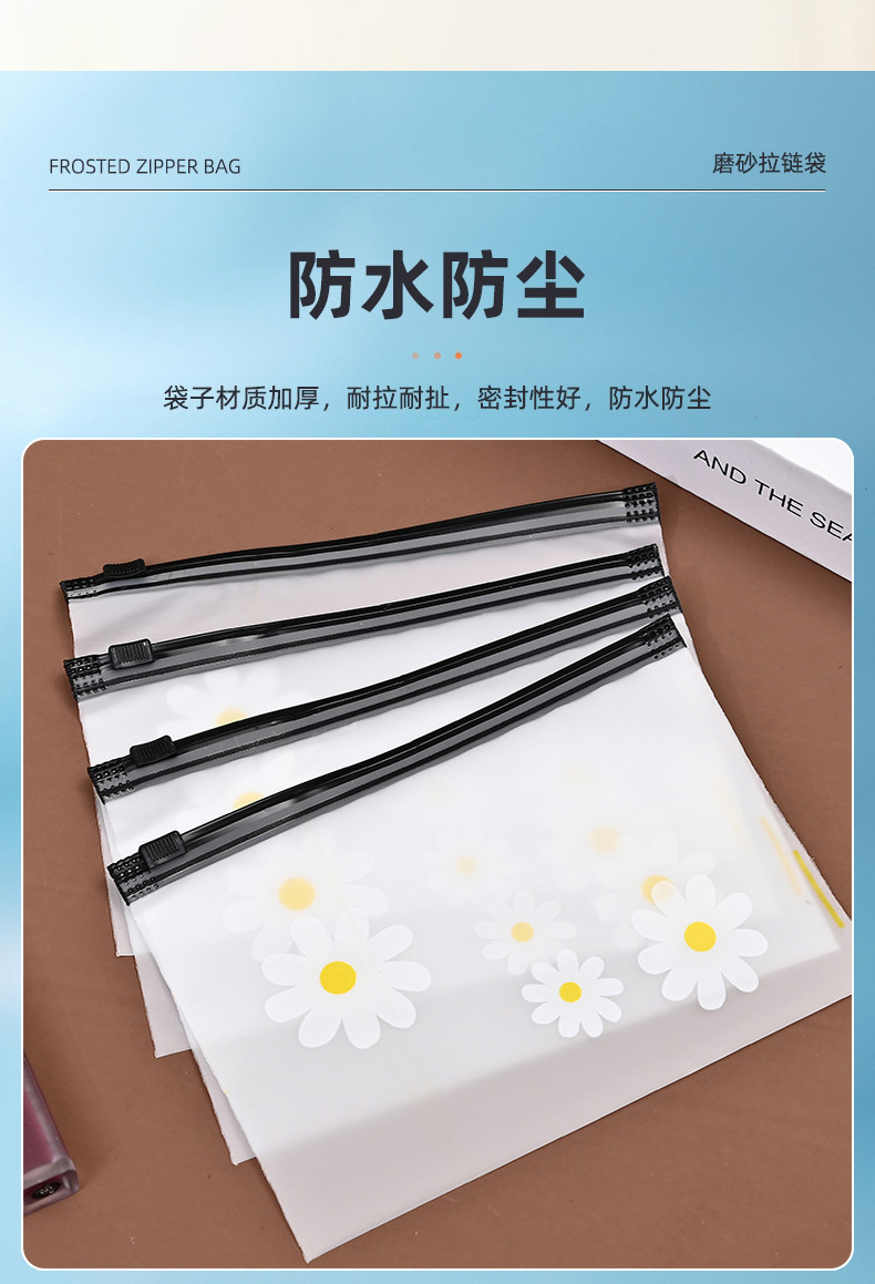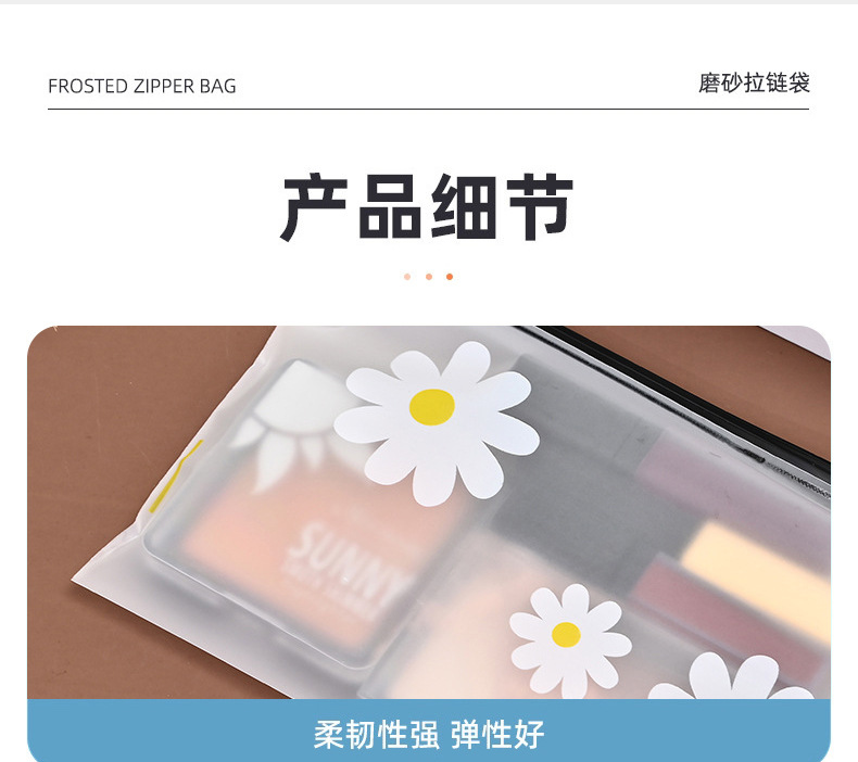 Bolsa de cremallera Margarita bolsa de anillo de pelo estilo coreano bolsa de cremallera fresca translúcido dedo esmerilado bolsa de almacenamiento al por mayor