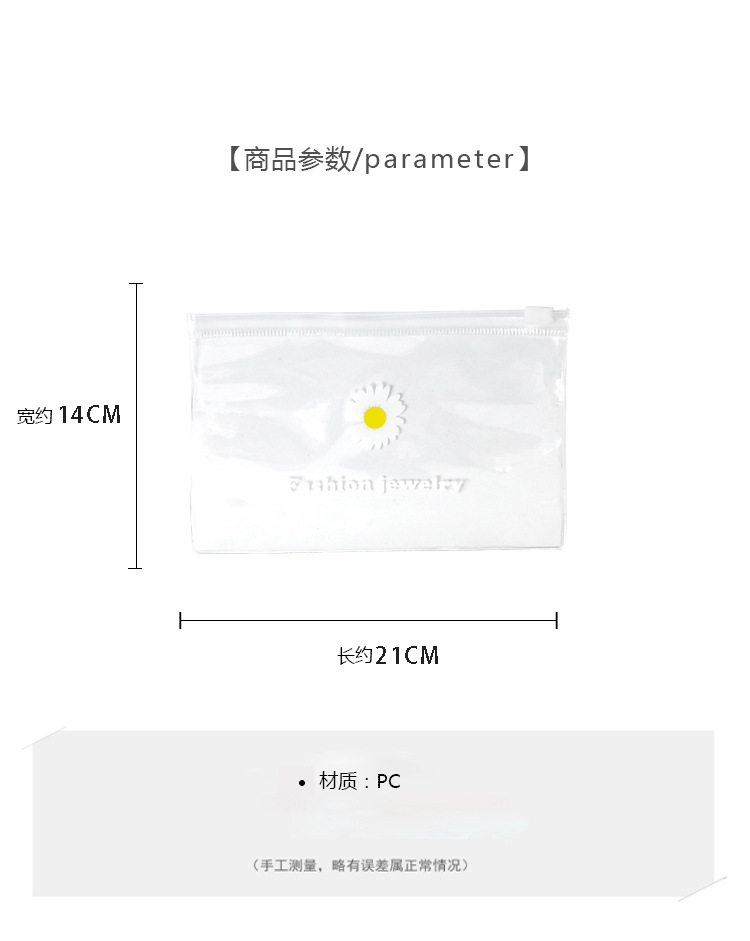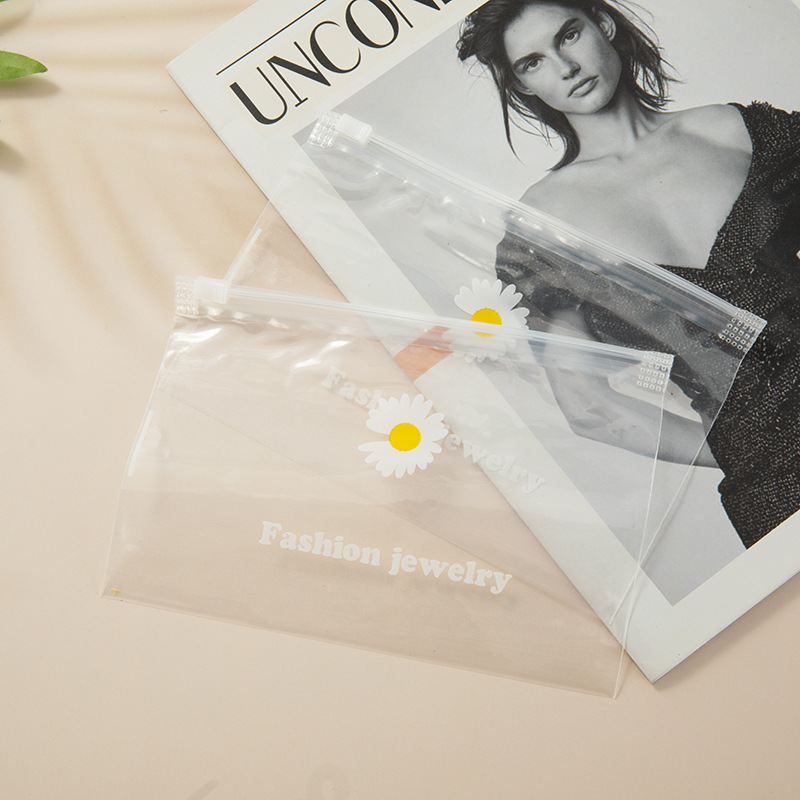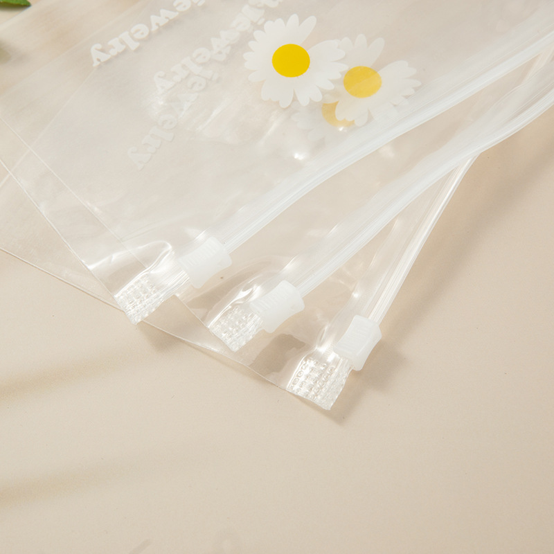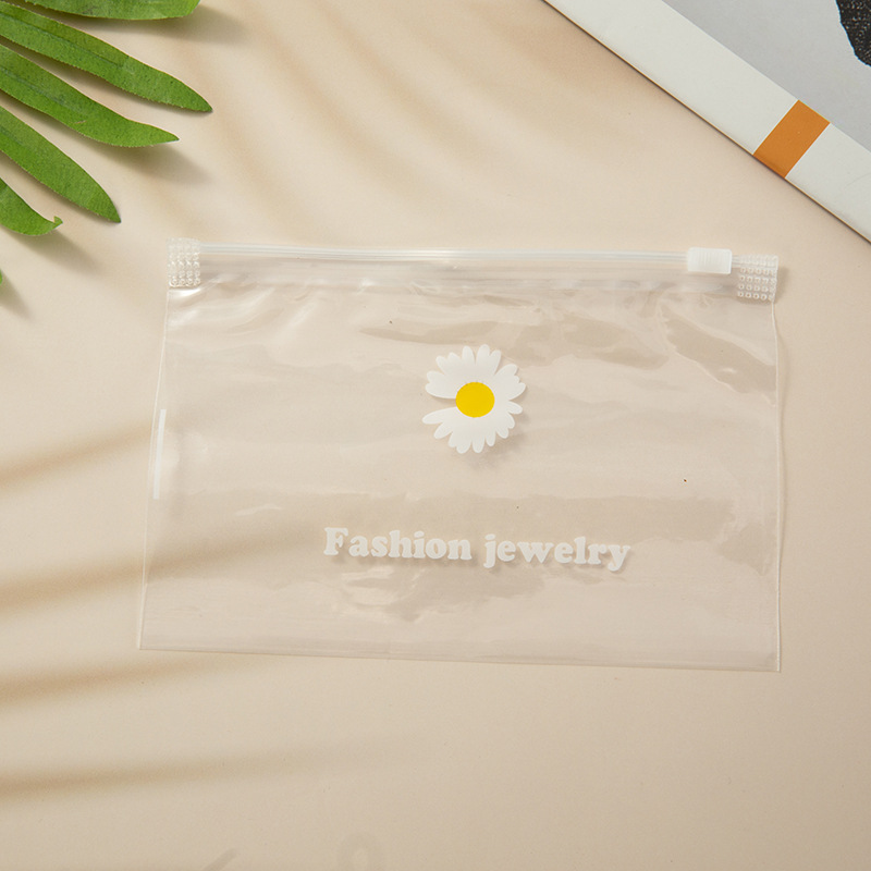 Estilo coreano Margarita de plástico transparente Ziplock bolsa de accesorios para el cabello bolsa de goma de la joyería de embalaje bolsa de almacenamiento fabricante en stock