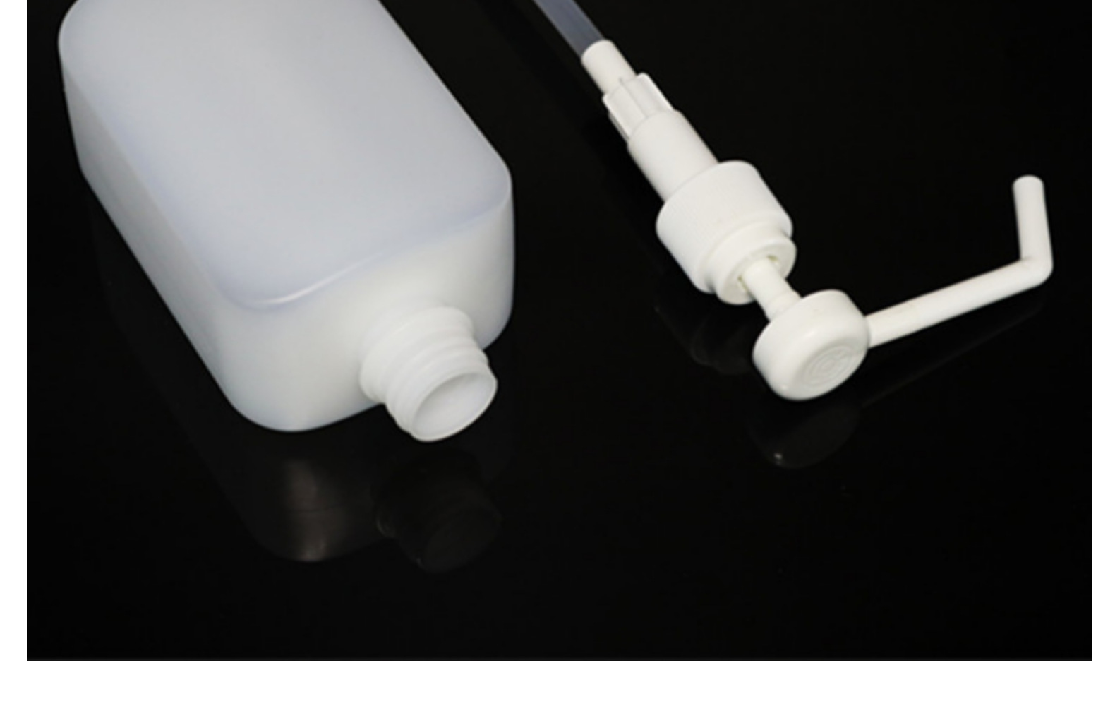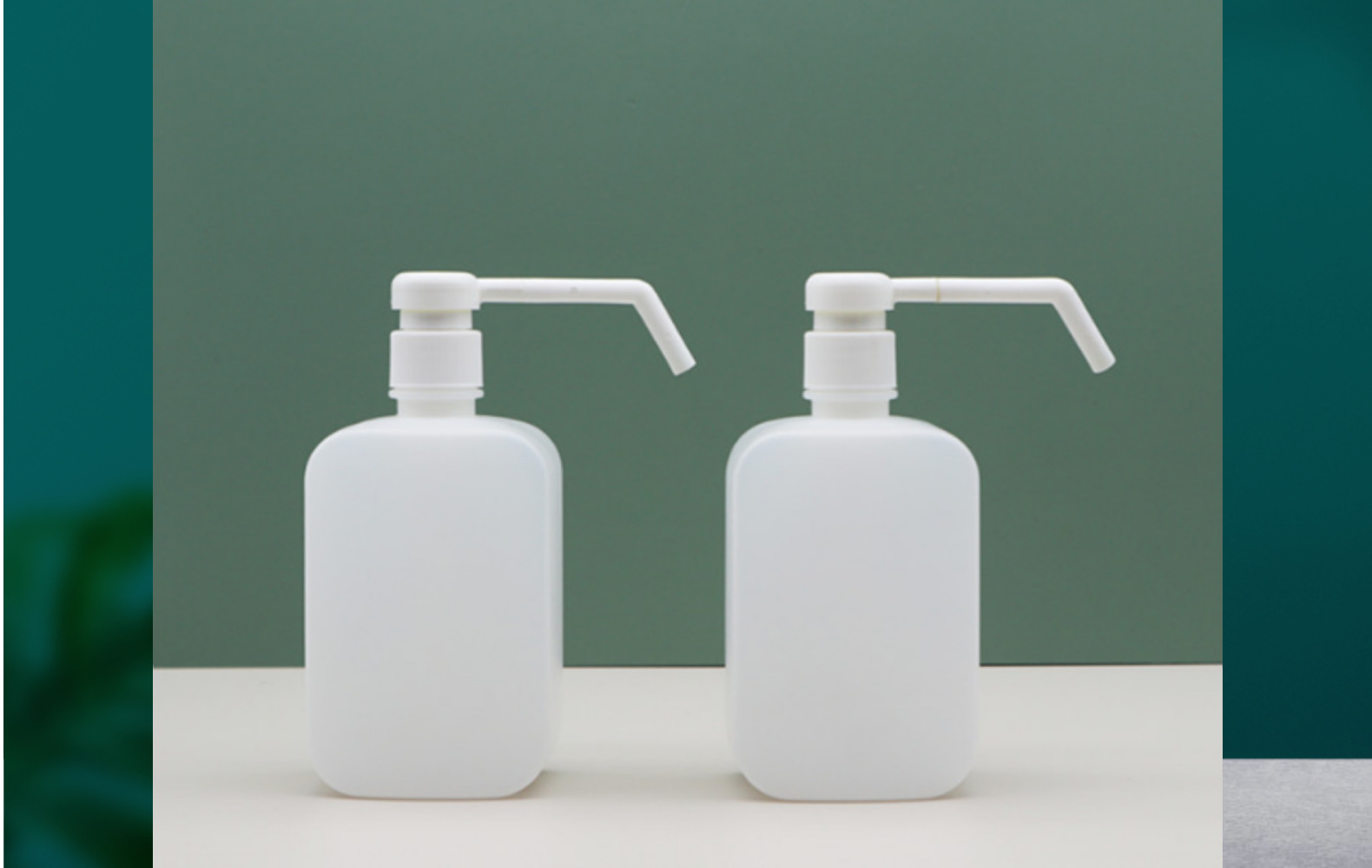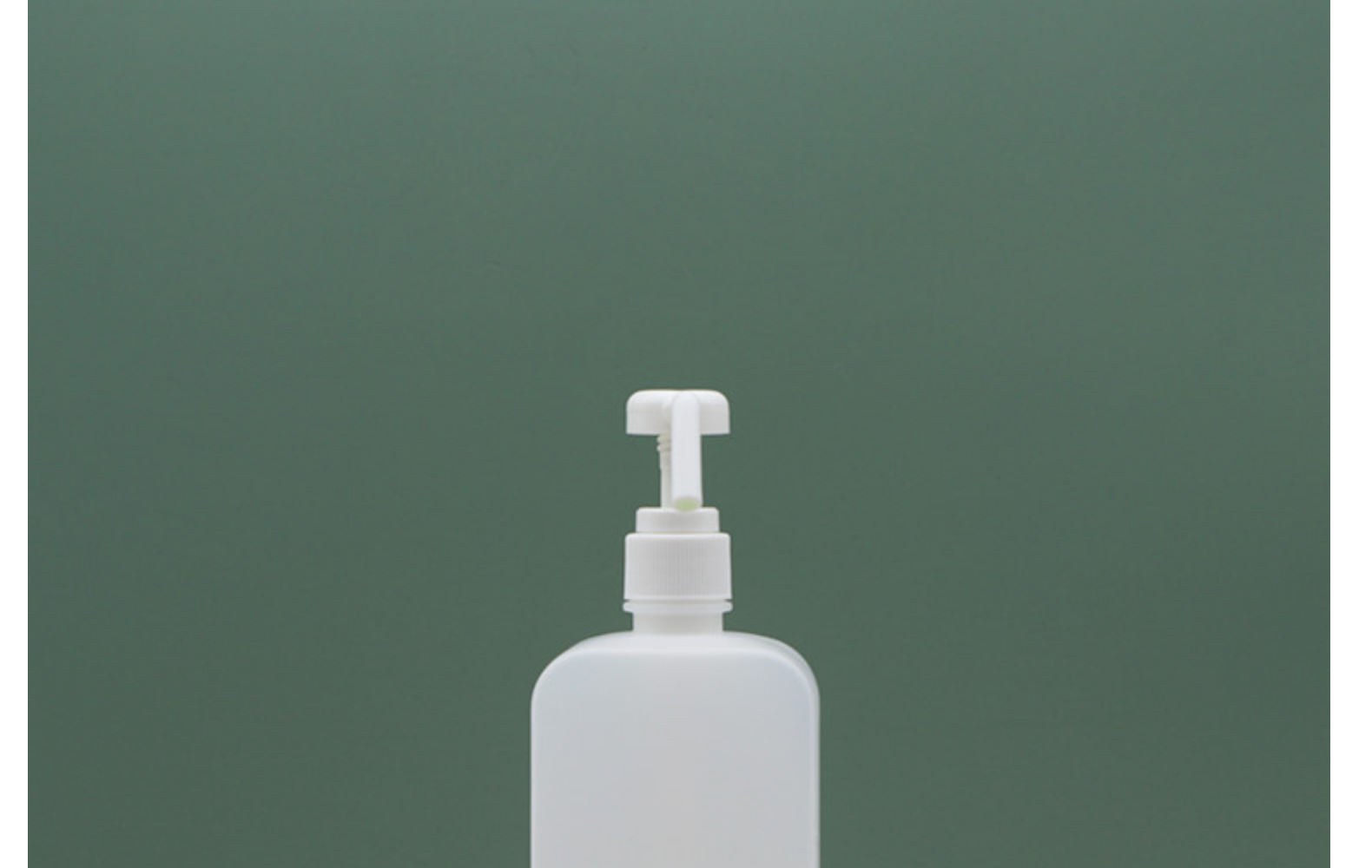 HDPE blanco plano cuadrado de plástico de boca larga de mango largo cabeza de la bomba botella de spray 500ml botella desinfectante de lavado de manos desechable