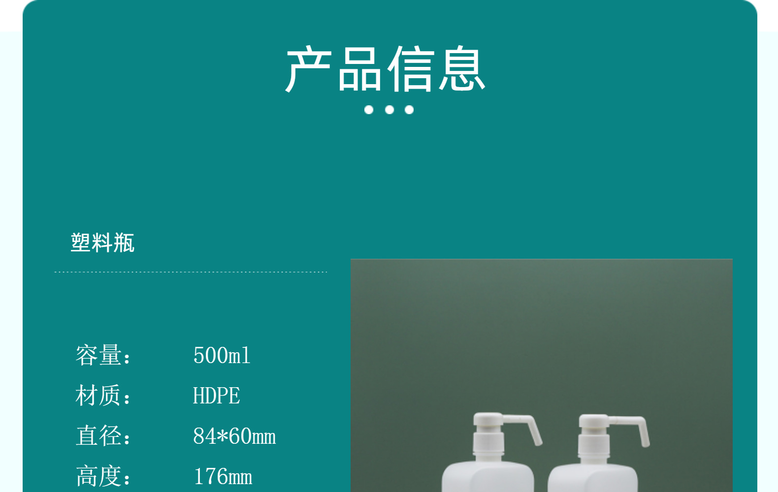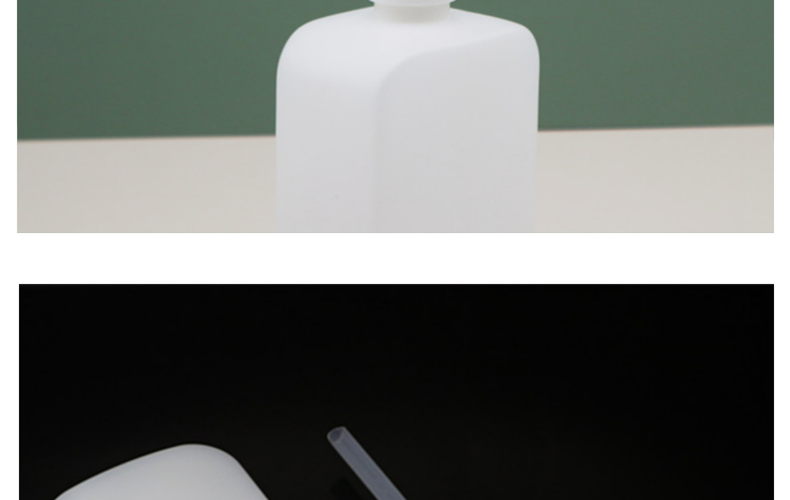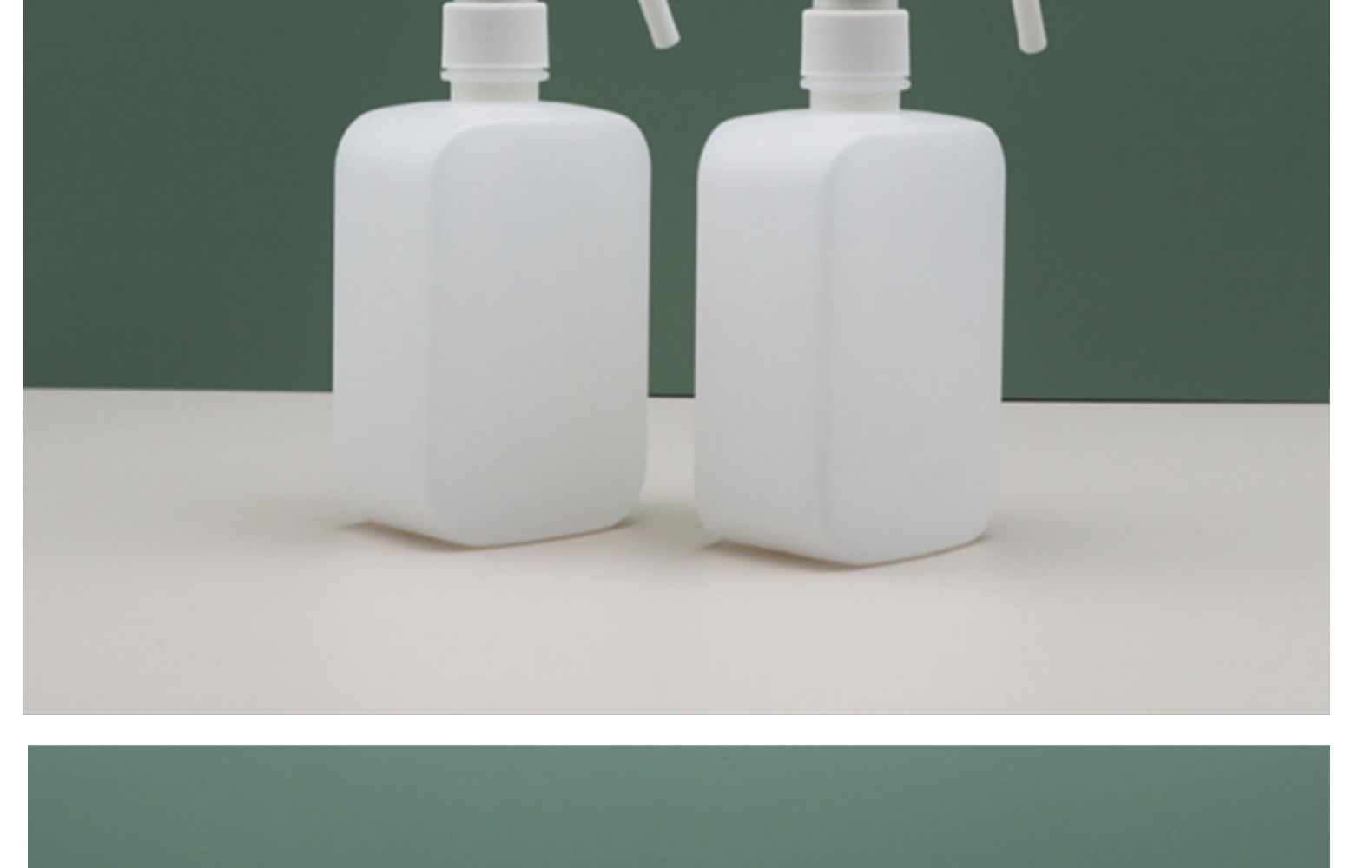 HDPE blanco plano cuadrado de plástico de boca larga de mango largo cabeza de la bomba botella de spray 500ml botella desinfectante de lavado de manos desechable