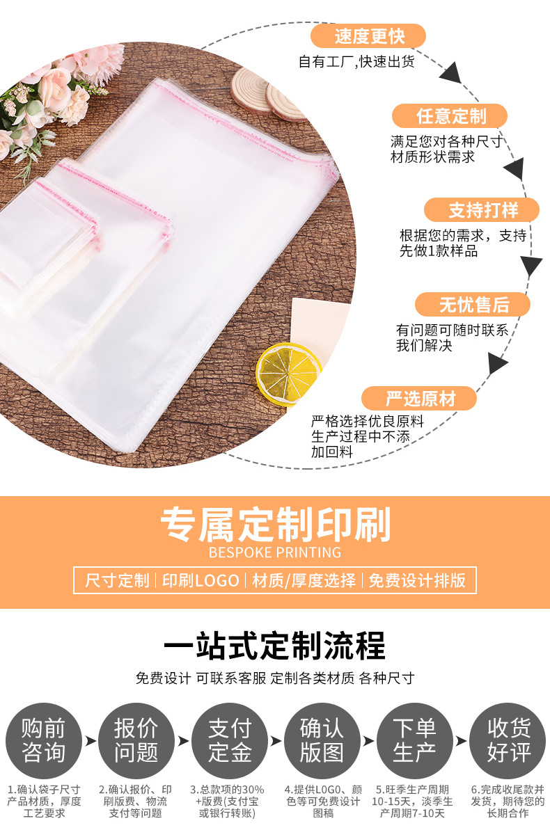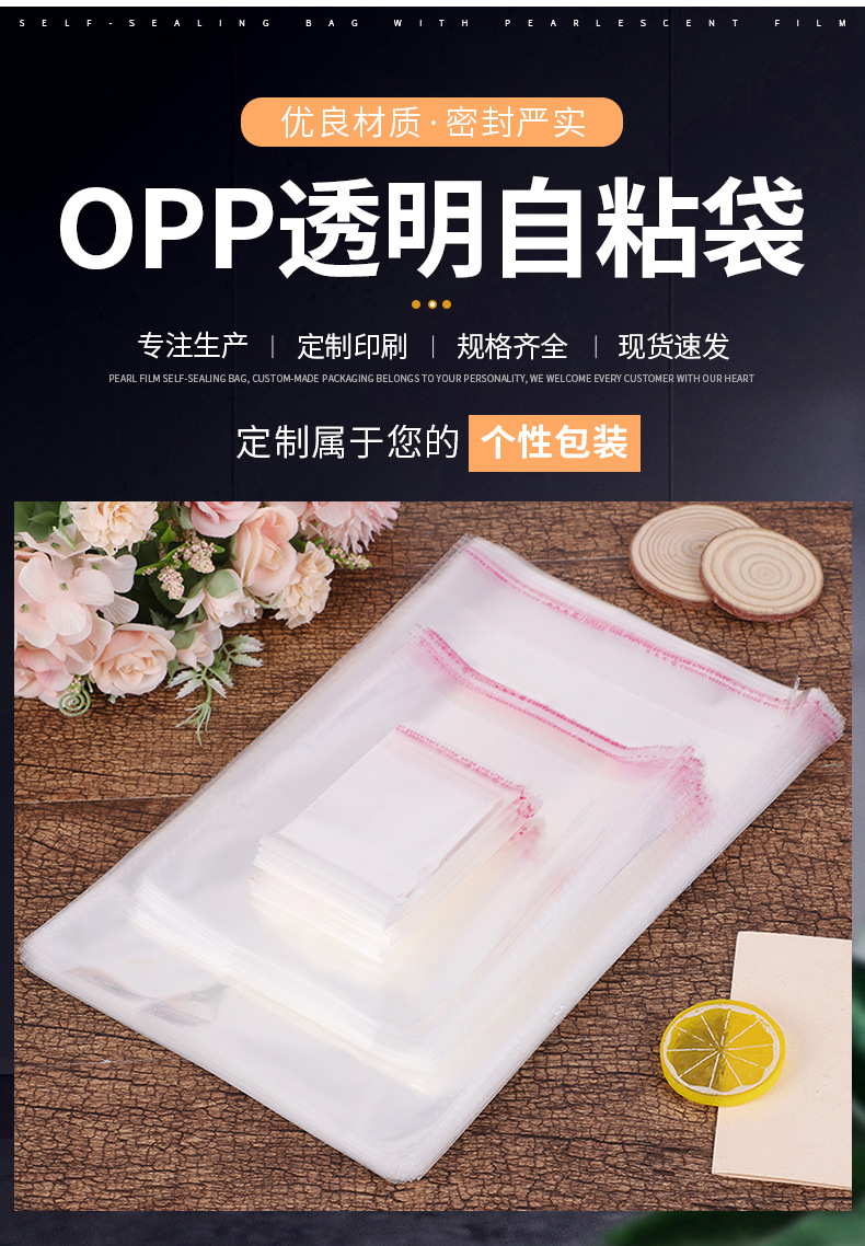 Bolsa de OPP de fábrica OPP bolsa de plástico transparente Ziplock bolsa de embalaje de la joyería bolsa de plástico de impresión adhesiva bolsa autoadhesiva