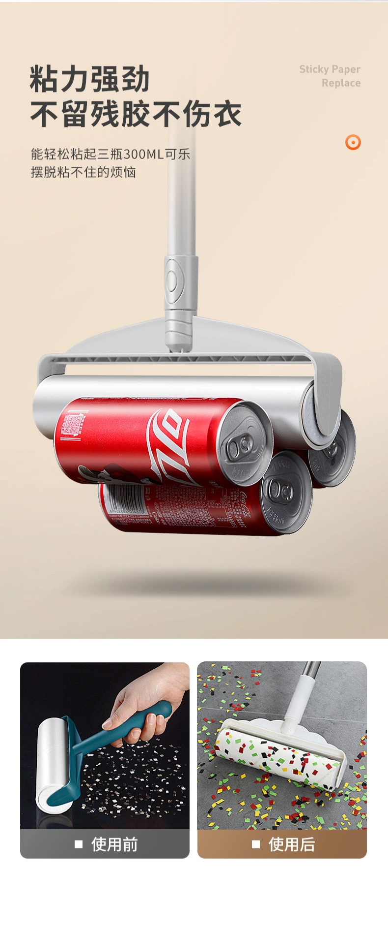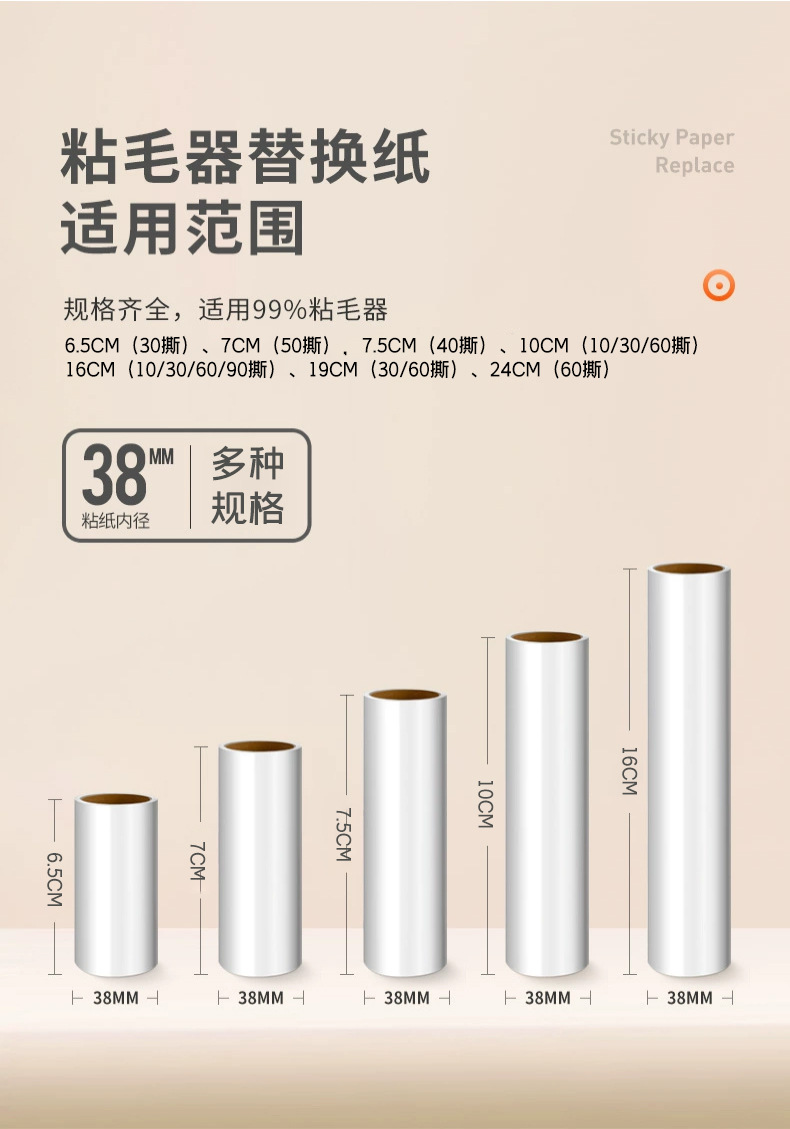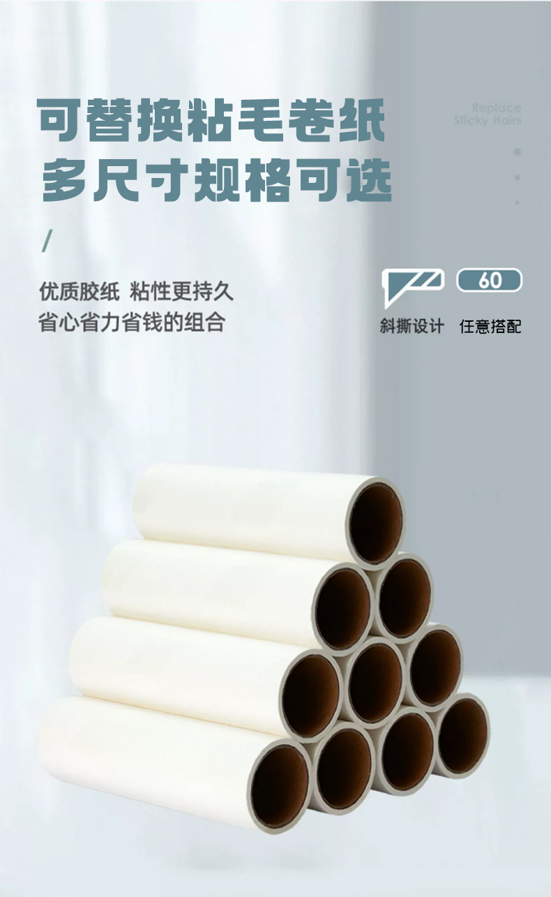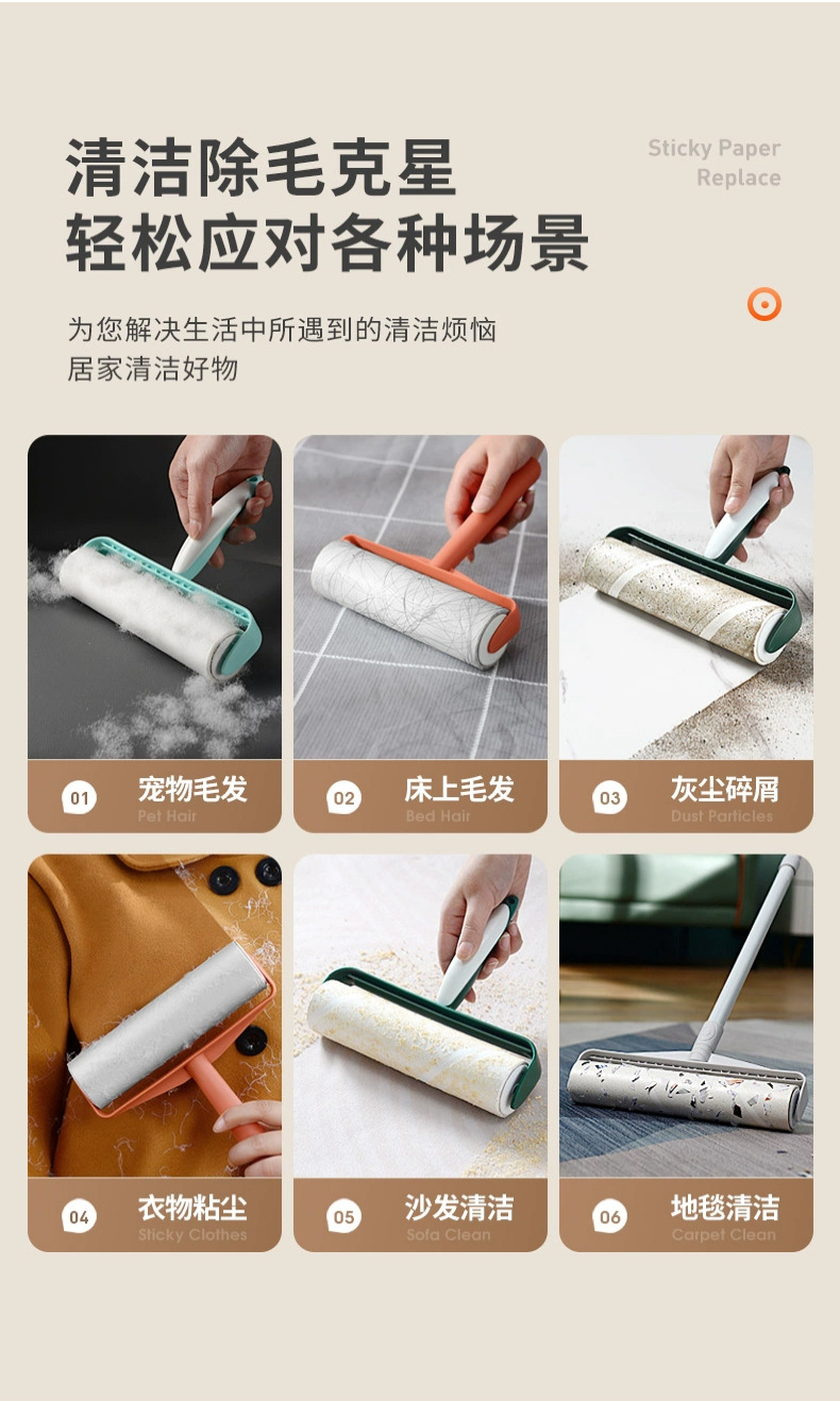 Rodillo de papel pegajoso desgarrable Dispositivo de pegado del pelo del animal doméstico Dispositivo de pegado ropa del hogar cepillo de rodillo rollo de papel reemplazable
