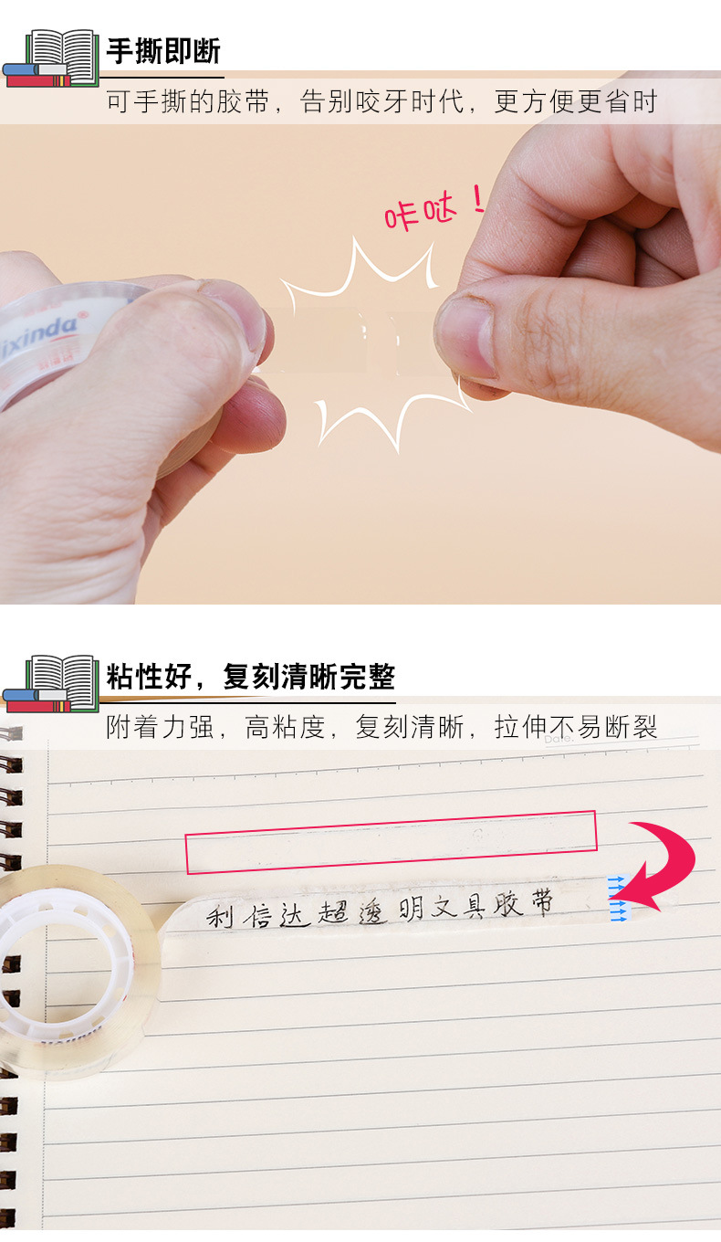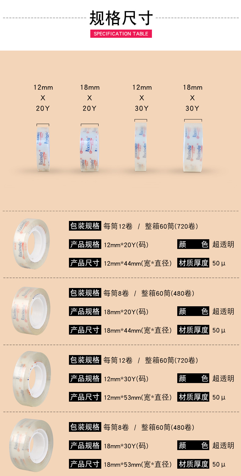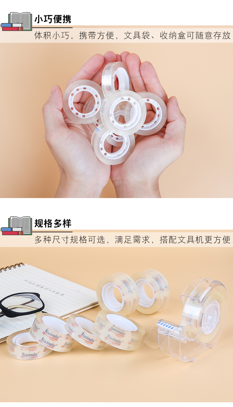 Cinta adhesiva transparente para papelería, tamaño pequeño de 1.2 cm, cinta para estudiantes fácil de rasgar a mano, cinta estrecha y resistente de 1.8 cm, venta al por mayor.