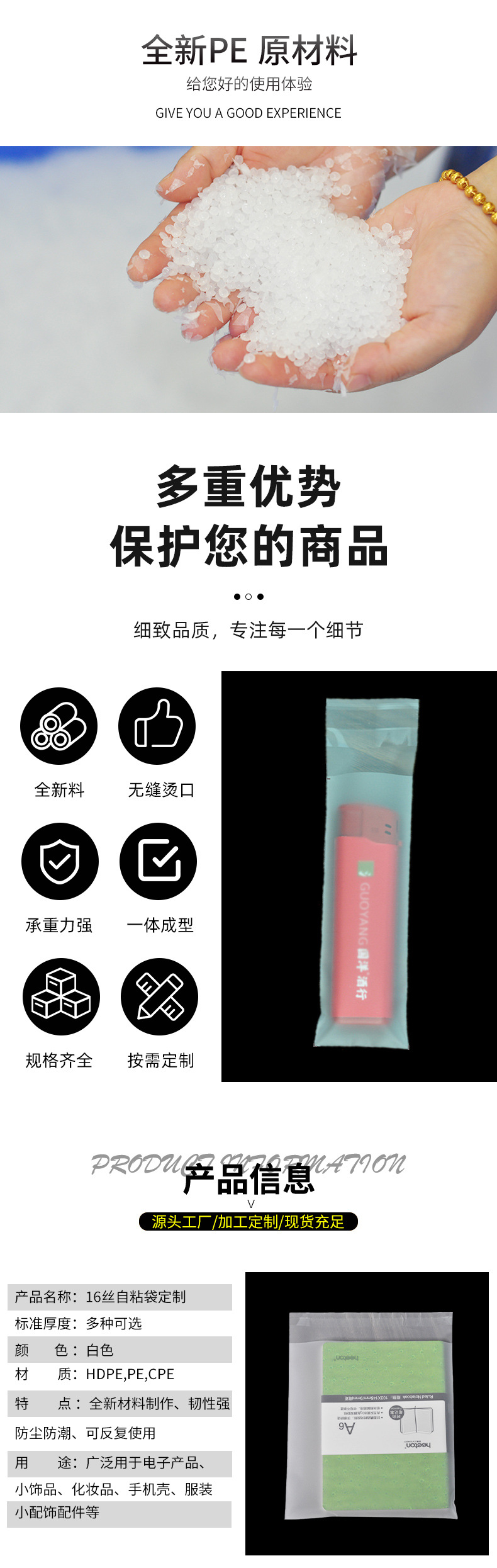 Suministro de fábrica 16 bolsa autoadhesiva de seda al por mayor reloj de cigarrillos ropa Comercio exterior Bolsa de embalaje blanco de alimentos médicos en stock