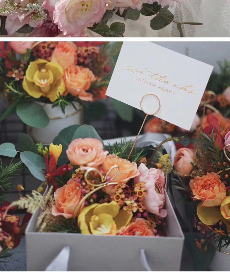 Xi Hua Nong flor material de embalaje estilo coreano Internet celebridad metal arreglo floral titular de la tarjeta tuhao ramo de oro titular de la tarjeta floral