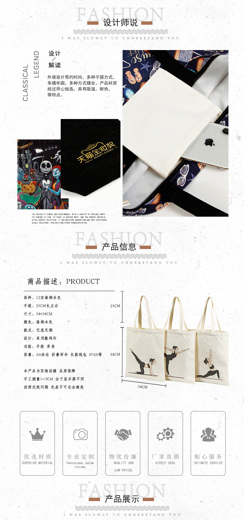 Bolsa de lona algodón personalizada para compras y promoción