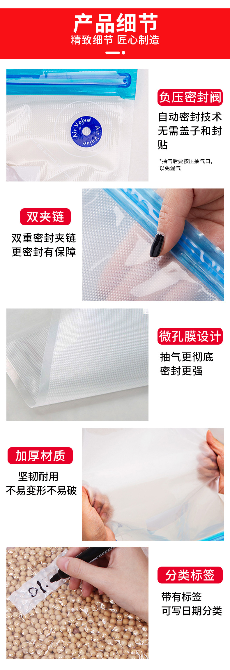 Yuesu vacío fresco-Bolsa de mantenimiento del hogar engrosada transparente de grado alimenticio comprimido bolsa de embalaje sellada bolsa de cremallera al por mayor