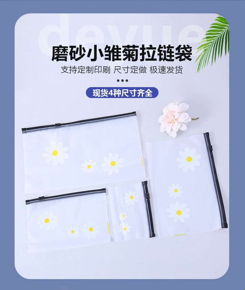 Versión coreana de la bolsa con cremallera, bolsa de margarita pequeña, lazo para el cabello, accesorios para el cabello, embalaje, calcetines de ribetes esmerilados translúcidos, bolsa de almacenamiento de toallas