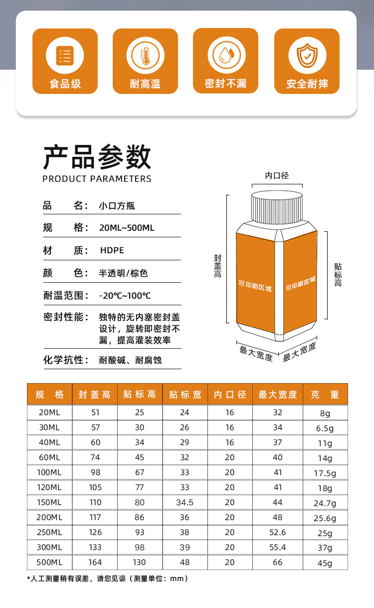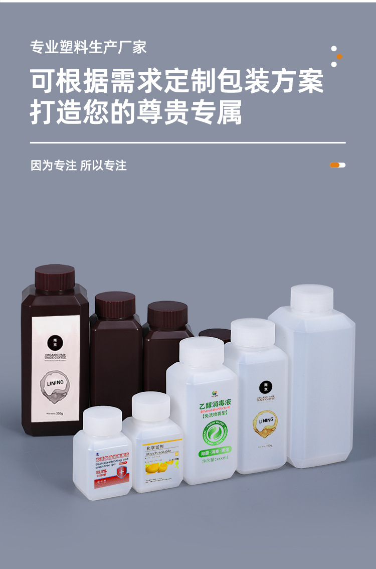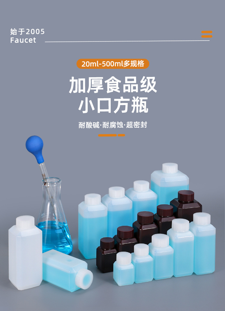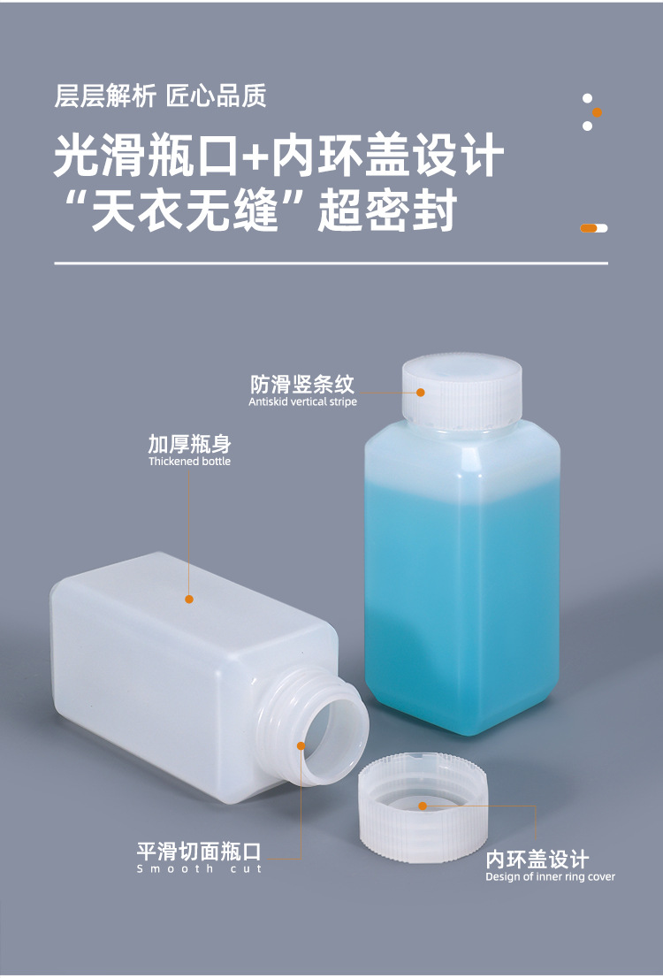 Metasequoia botella de reactivo de muestra química sellada de boca pequeña botella de tinta de 20-500ml botella cuadrada de plástico pesticida de resina en polvo