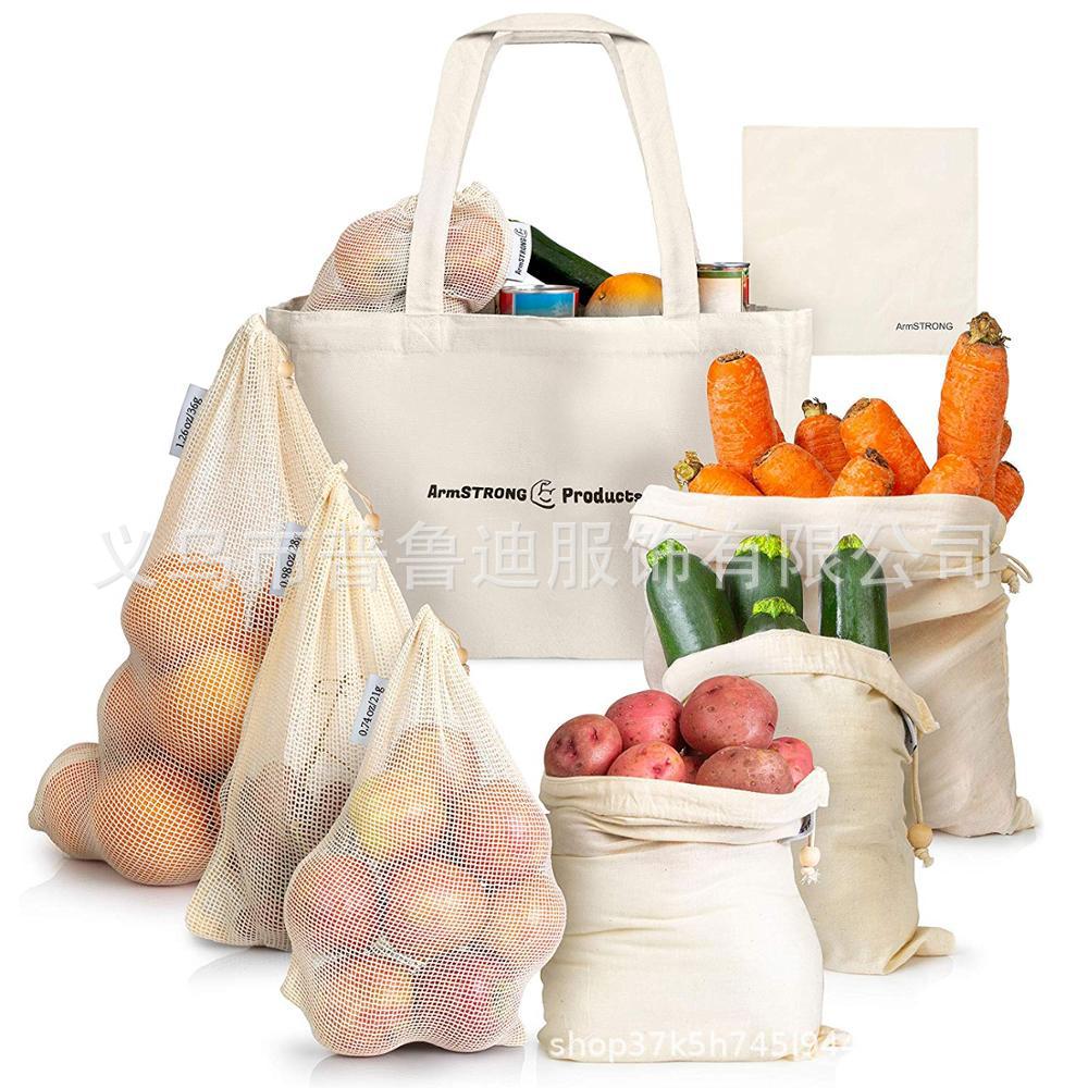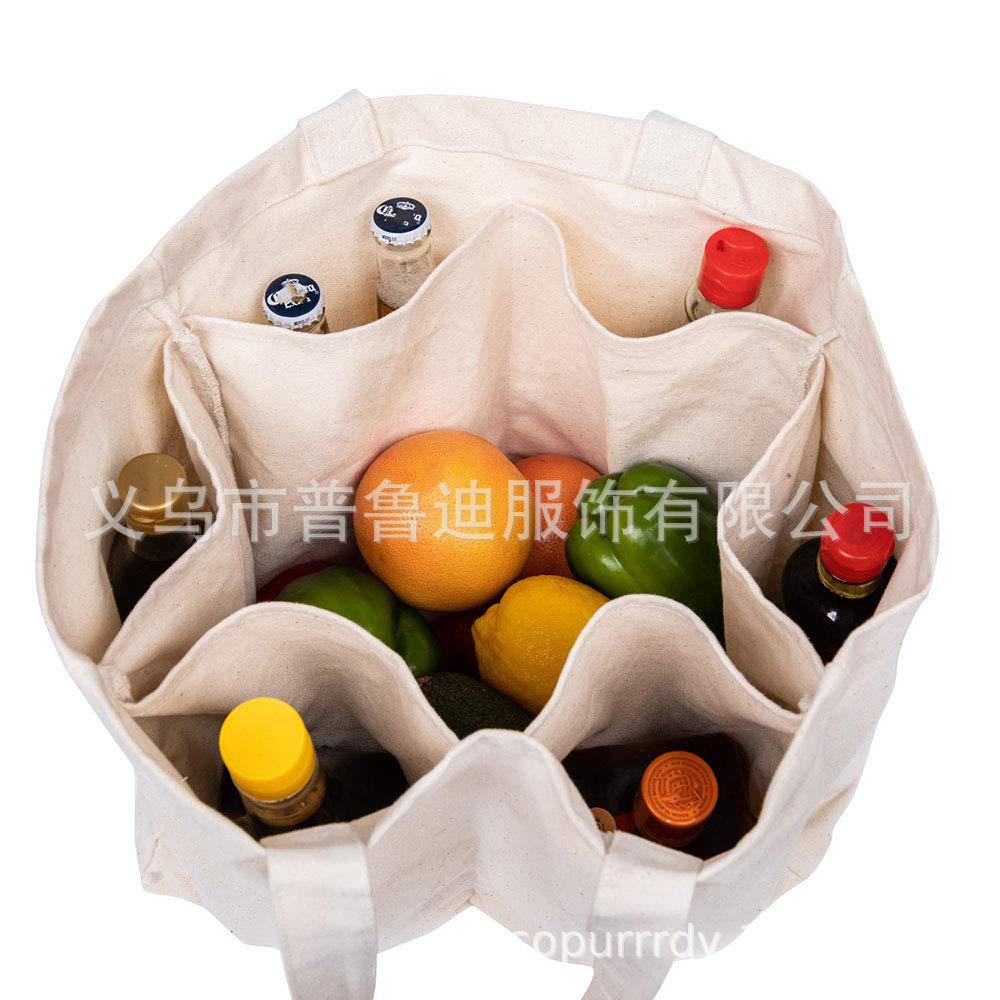 6 bolsillos bolsa de algodón de frutas y verduras bolso de gran capacidad compartimento supermercado bolsa de compras bolso de hombro