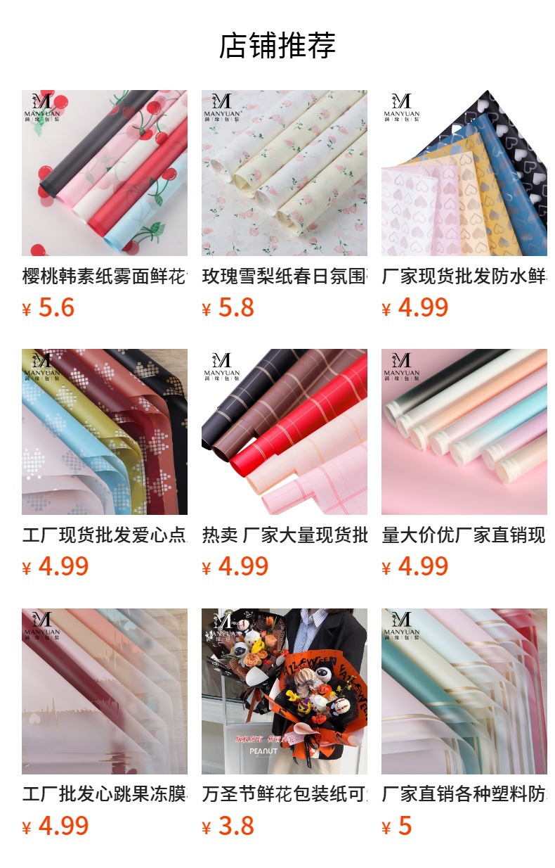 Papel de embalaje de flores impermeable bopp material de impresión Hansu herbaria floral ramo de papel de embalaje 20 hojas
