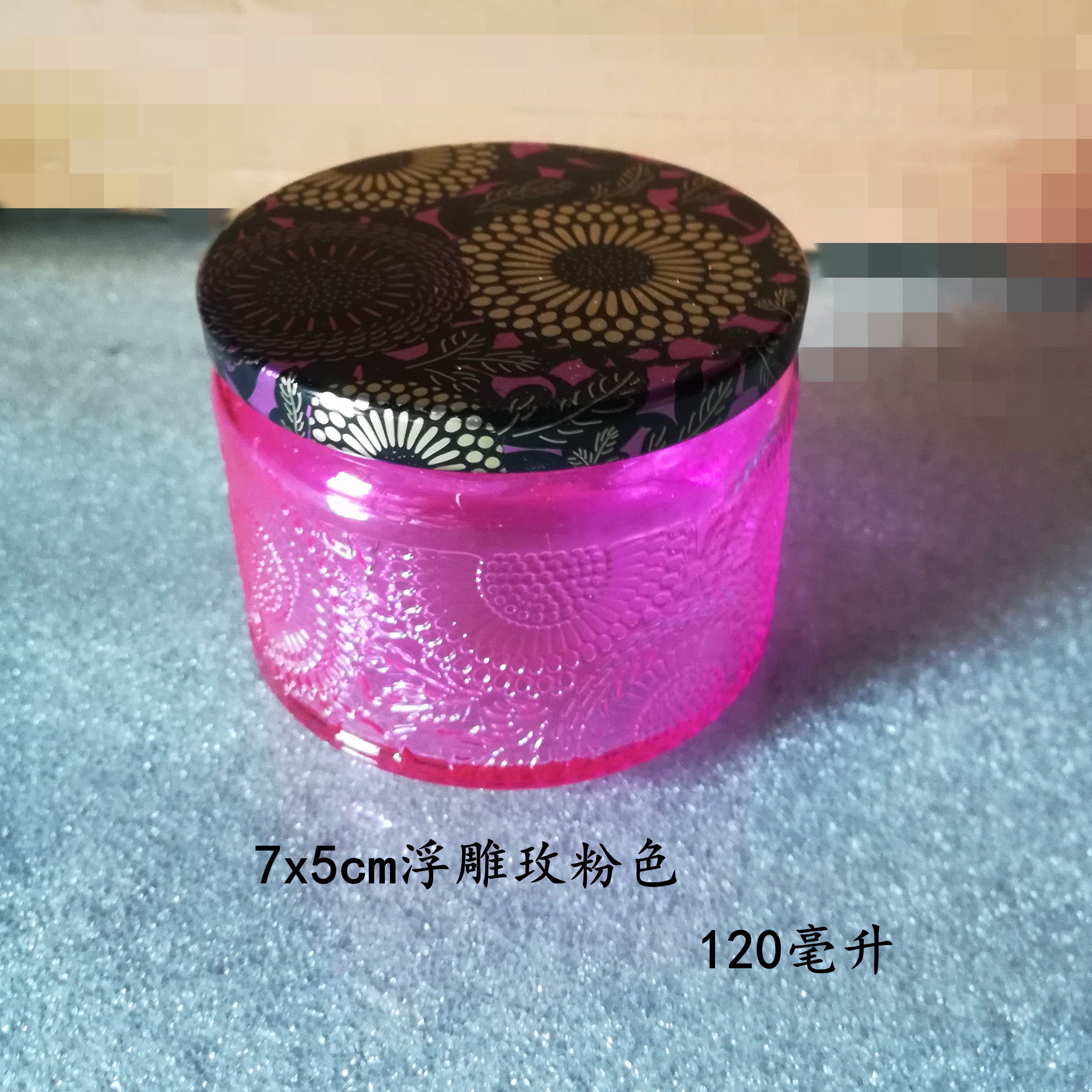 Fragancia para el hogar pequeña taza de vela en relieve de color con tapa botella de vela de vidrio de bricolaje recipiente de vela botella transparente