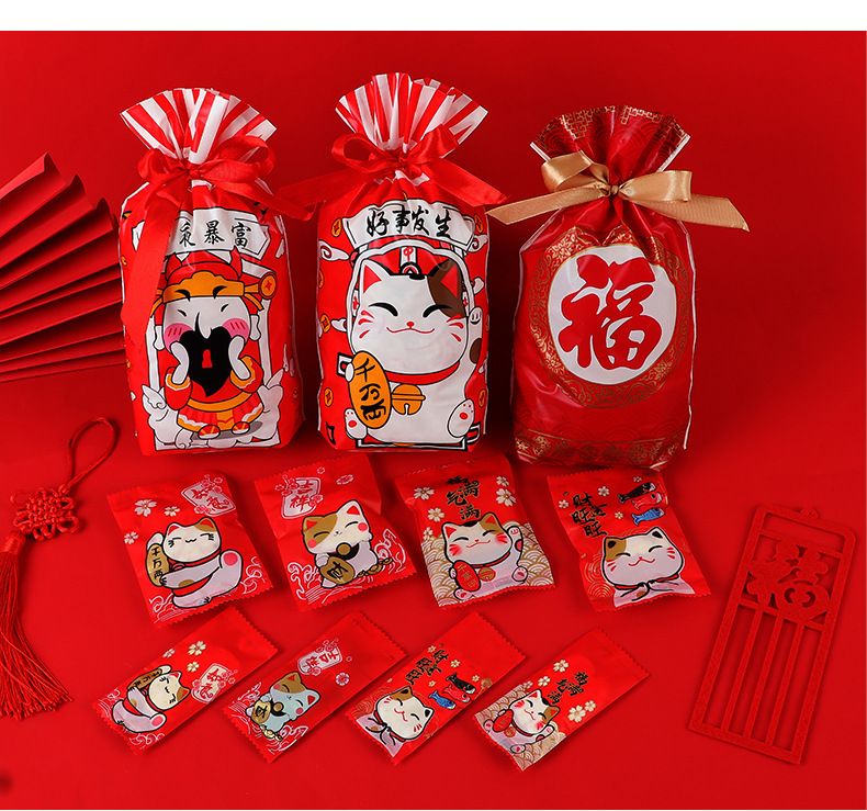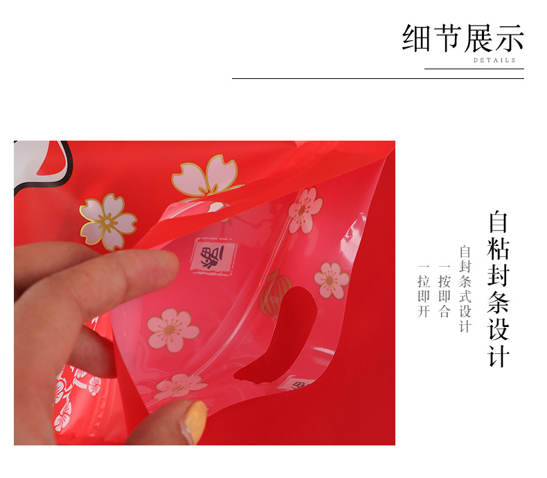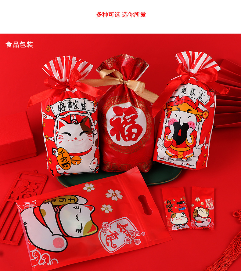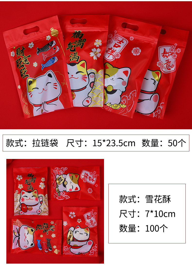 Original Año Nuevo leche Jujube gato afortunado turrón fruta copo de nieve pastel crujiente seco máquina de cordón sello cremallera bolsa de embalaje de regalo