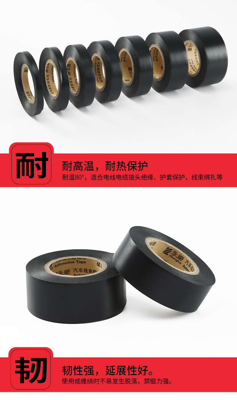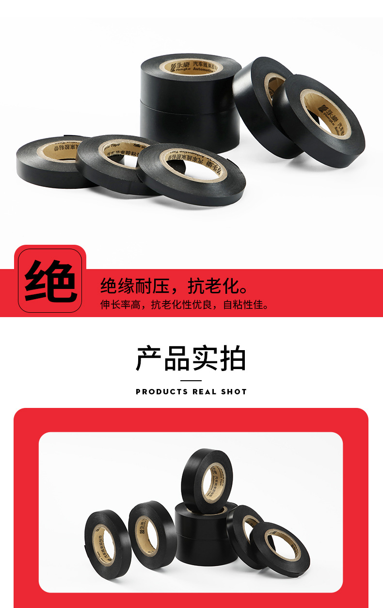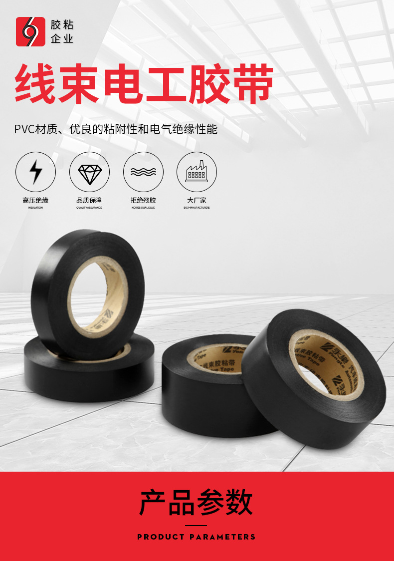 Fabricante de pegamento de arnés de aislamiento impermeable PVC electricista eléctrico cinta de la industria automotriz sellado y fijación de pegamento eléctrico en blanco y negro