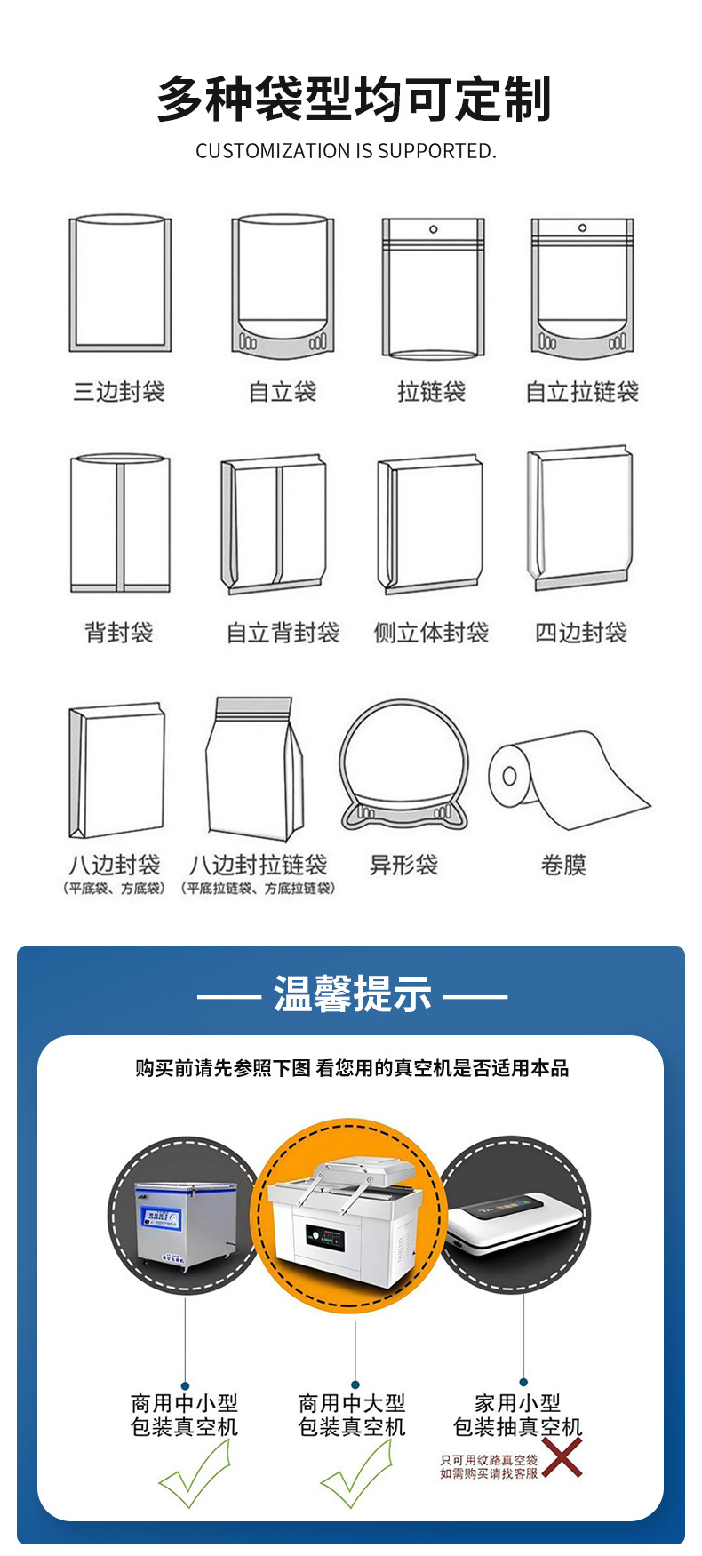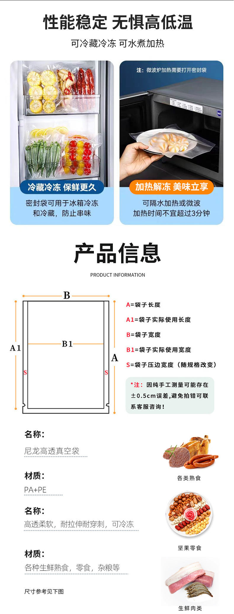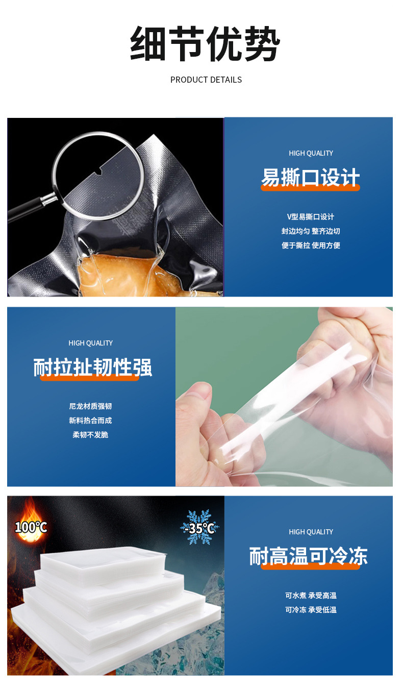Bolsa de vacío de nailon spot al por mayor bolsa de vacío brillante de alimentos bolsa de almacenamiento fresco de succión bolsa de embalaje de plástico impresión