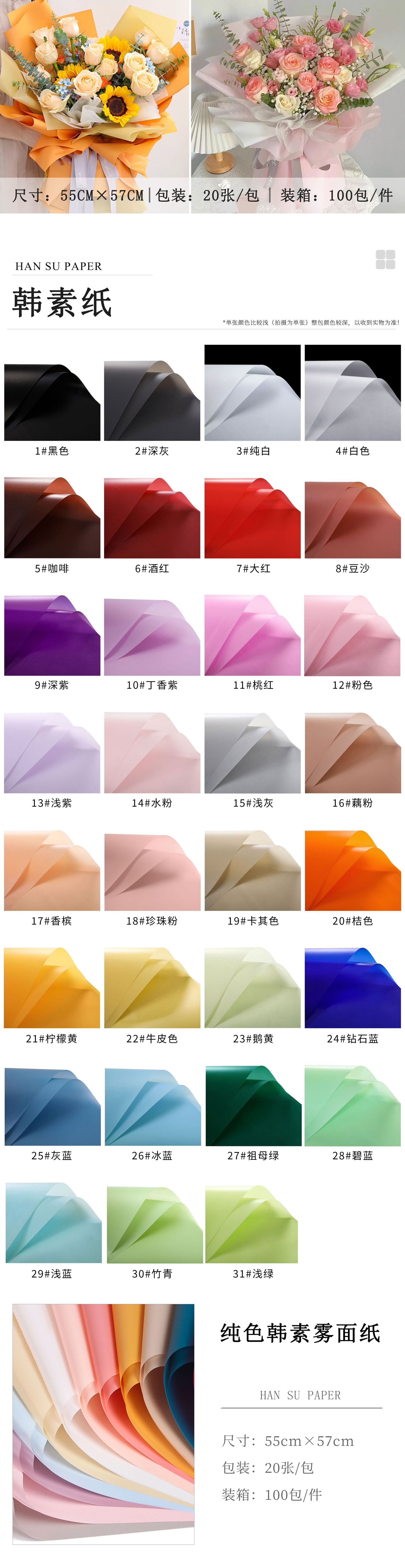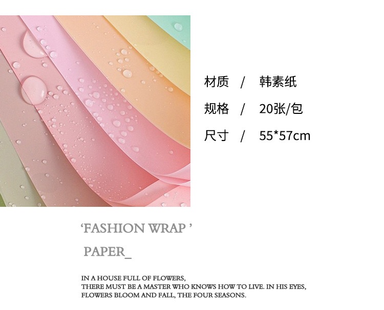 Papel de regalo de la flor al por mayor estilo coreano color sólido translúcido papel mate impermeable