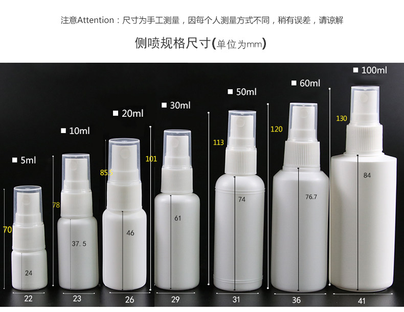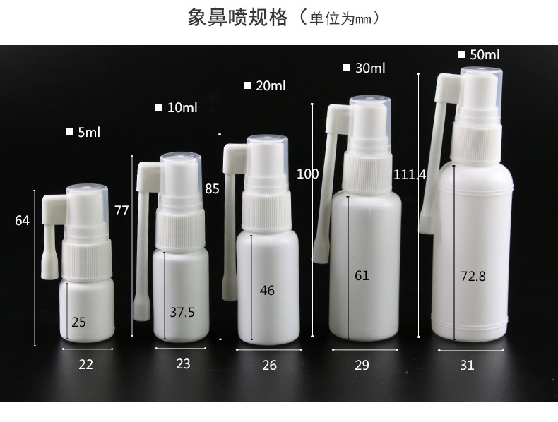 10 20 30 50ml botella de spray lateral botella de plástico botella de aerosol de la nariz del elefante botella de spray directo pequeña regadera médica