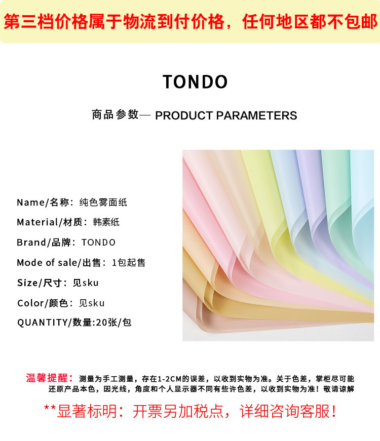Tang de luz suave papel mate papel de embalaje de flores translúcido impermeable color sólido papel liso coreano papel mate fábrica al por mayor