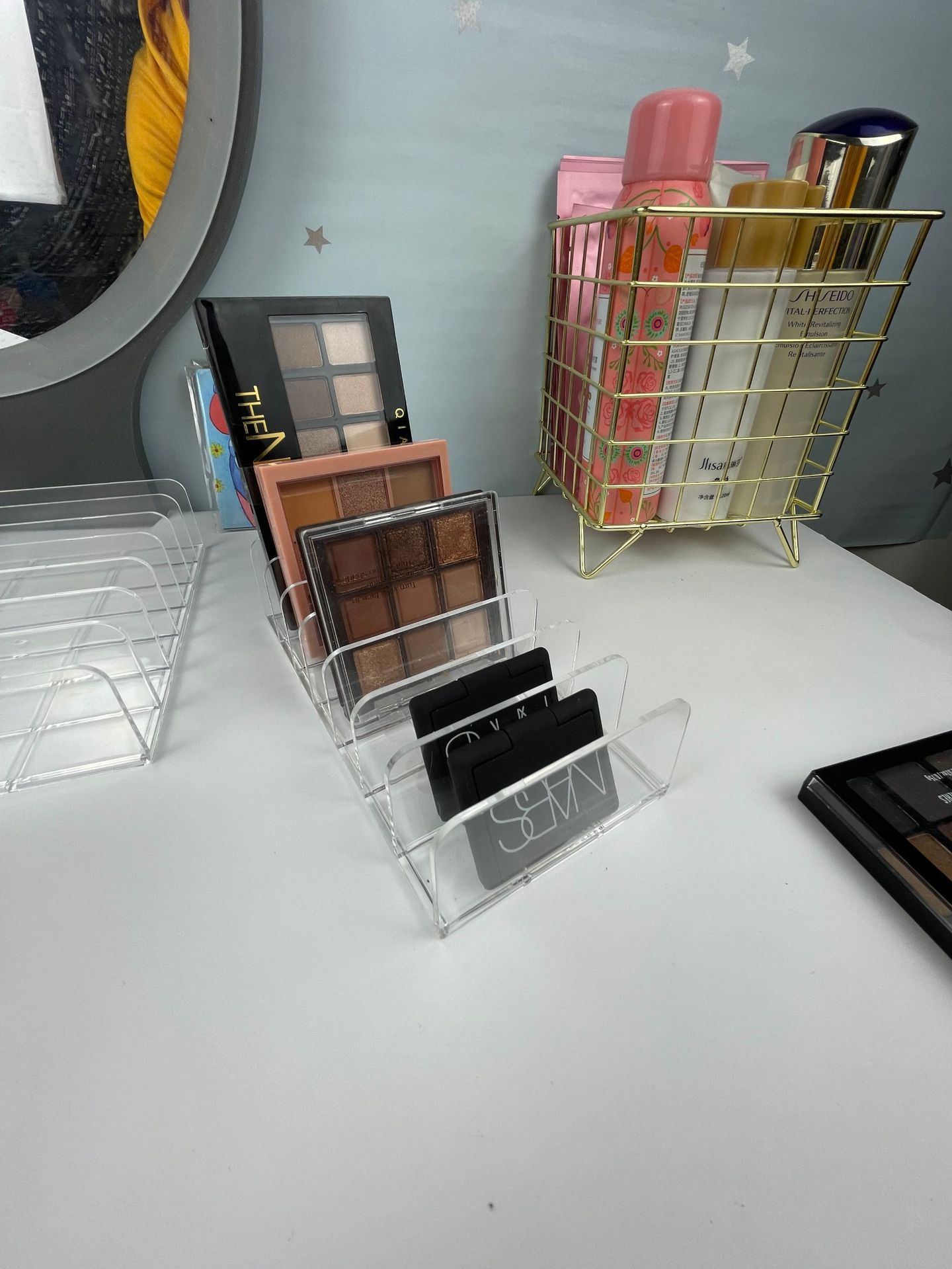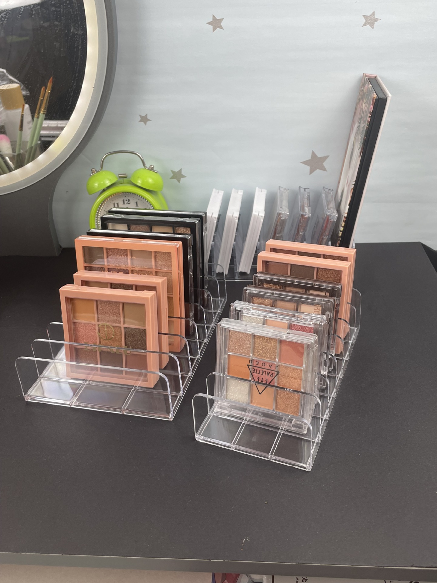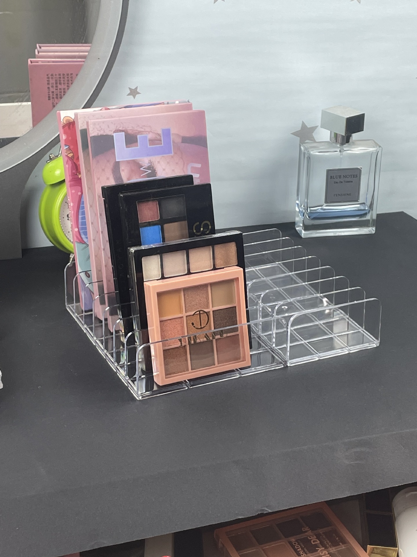 Sombra de ojos polvo bandeja de pastel caja de almacenamiento maquillaje rubor cosméticos estante escritorio multi-rejilla caja de Presentación 7 rejilla almacenamiento transparente