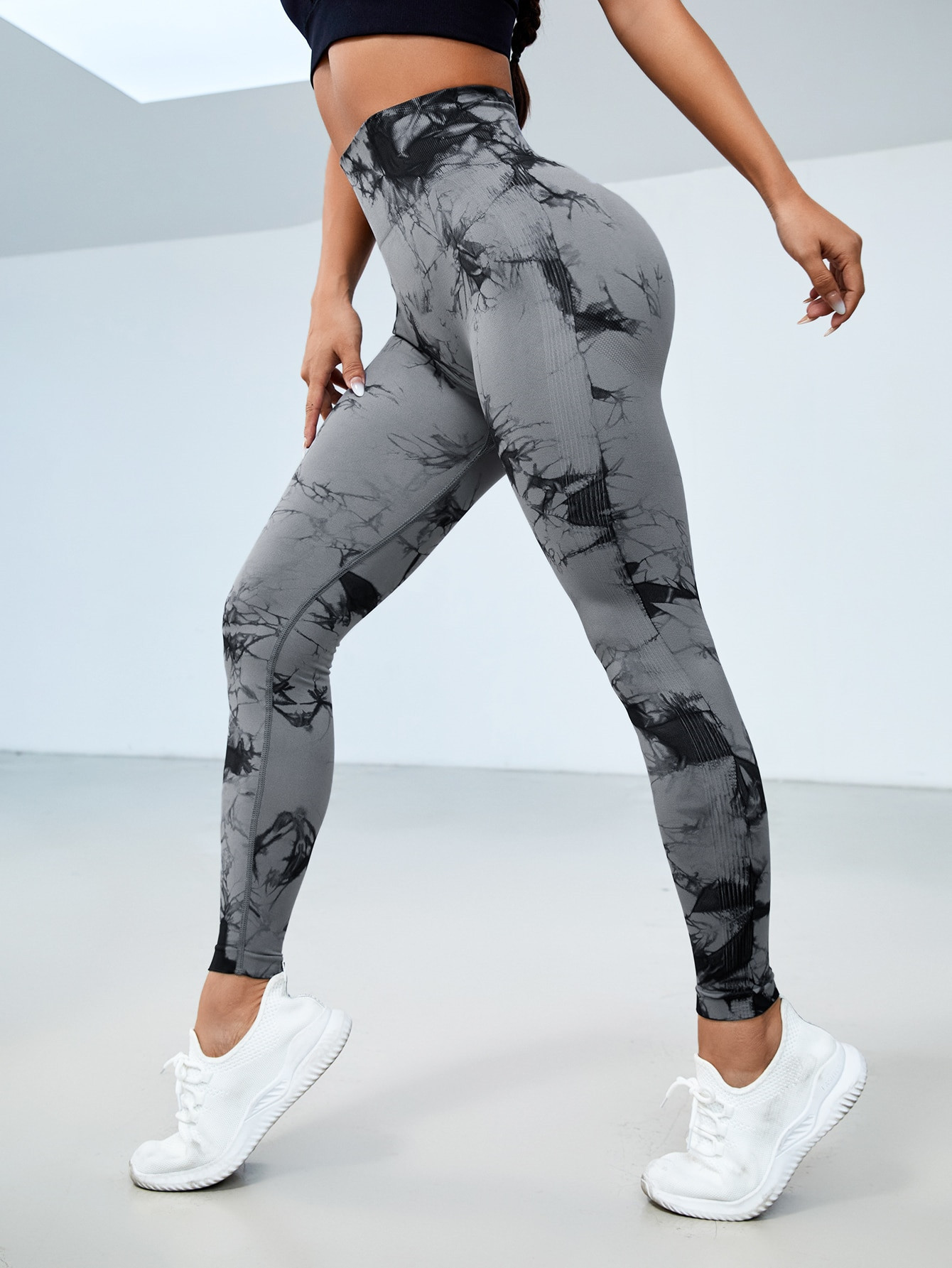Pantalones deportivos de levantamiento de cadera melocotón de Mujer Pantalones de fitness Transfronterizos europeos y americanos sin costura de cintura alta pantalones de yoga teñidos con cordones
