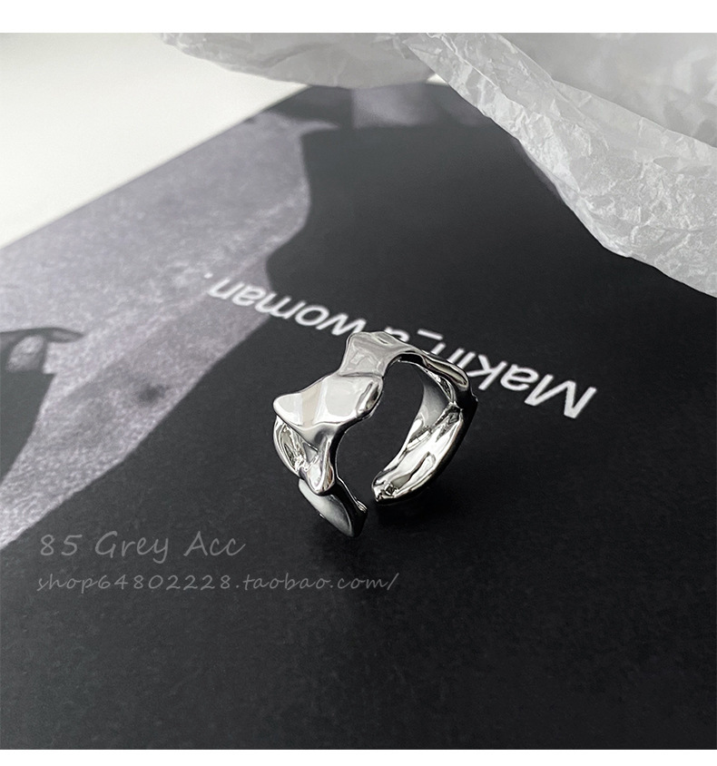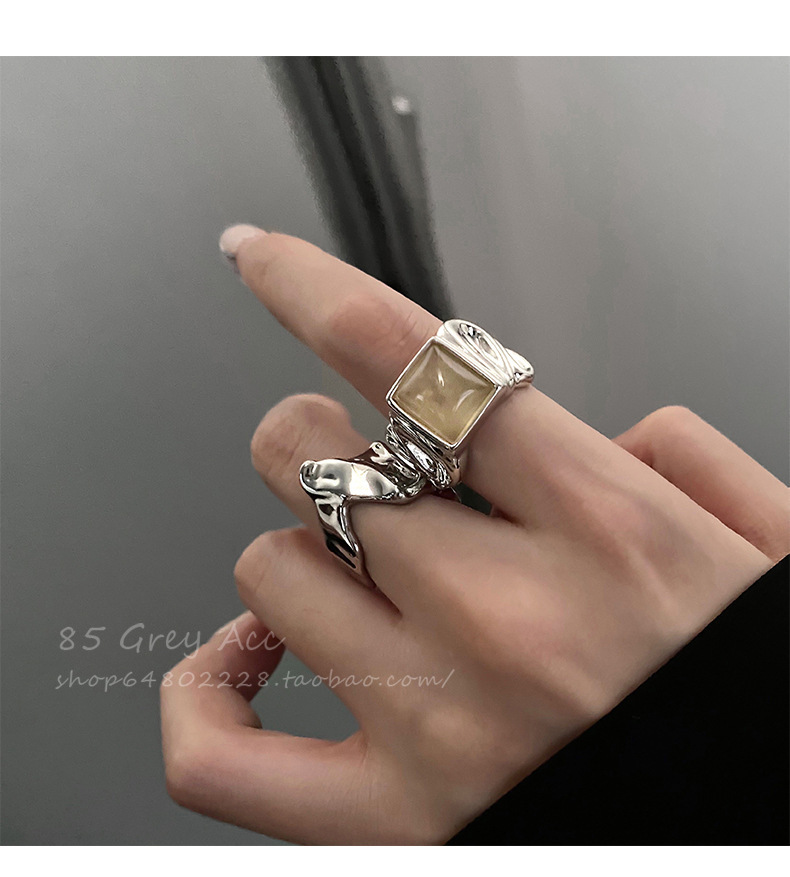 Anillo cuadrado chapado en plata S925 para mujer, anillo abierto en forma de V geométrico de moda vintage, anillo irregular para el dedo índice estilo ins.