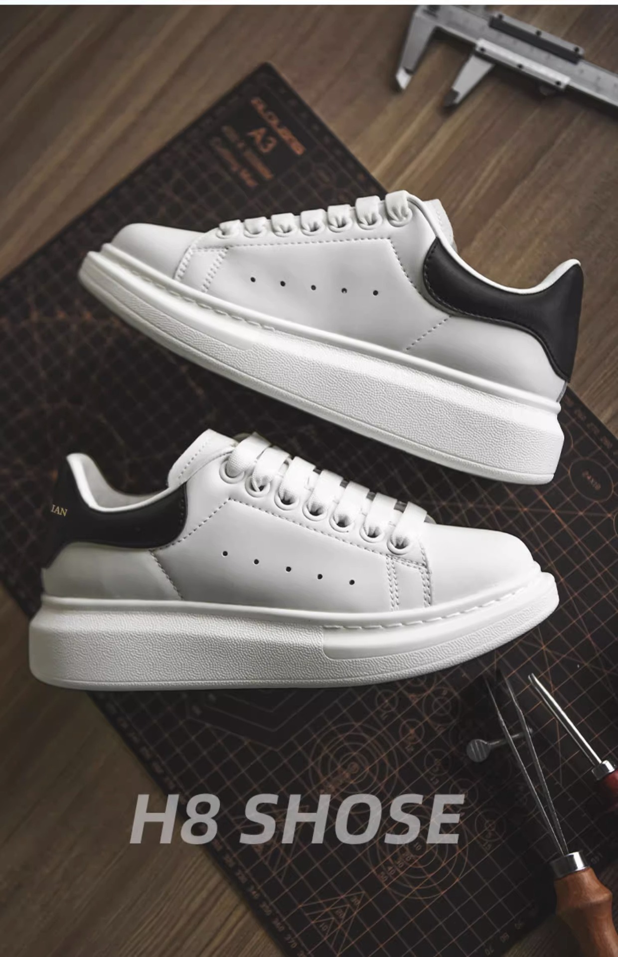 Putian puro original buenos zapatos de piel de vaca McQueen zapatos blancos zapatos de hombre 2023 nuevos zapatos de tablero de verano negro zapatos de suela gruesa