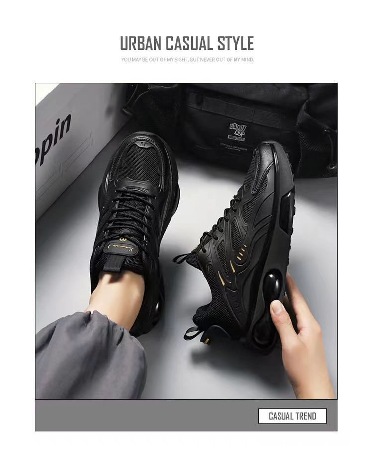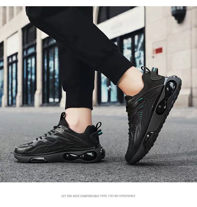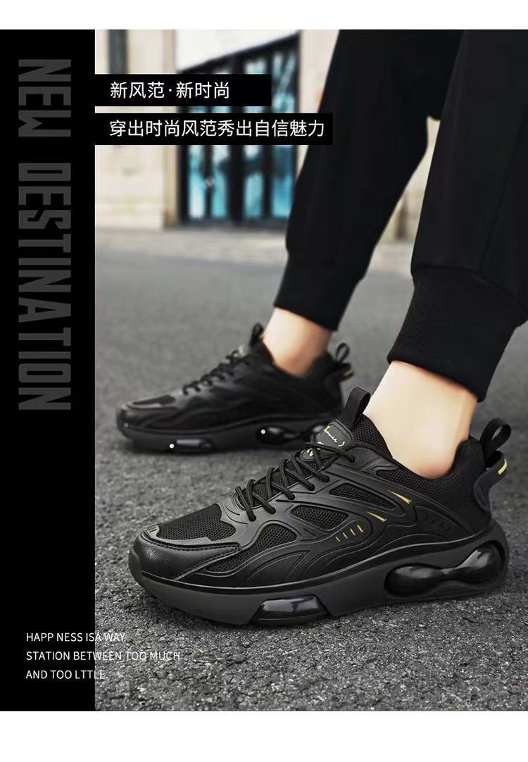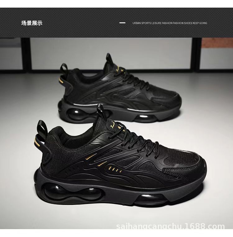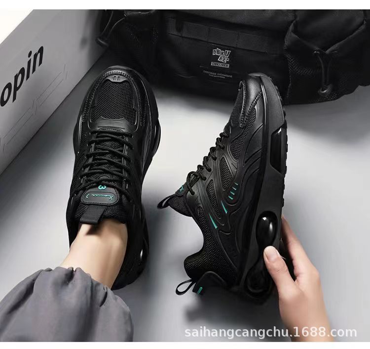 Zapatos deportivos para hombre, zapatos para correr transpirables de otoño para jóvenes, zapatos casuales de suela gruesa, zapatos de moda estilo guerrero negro para papá