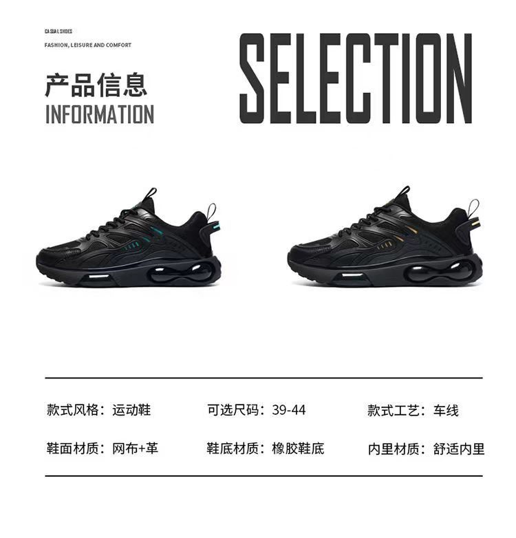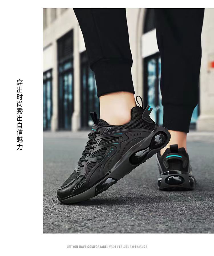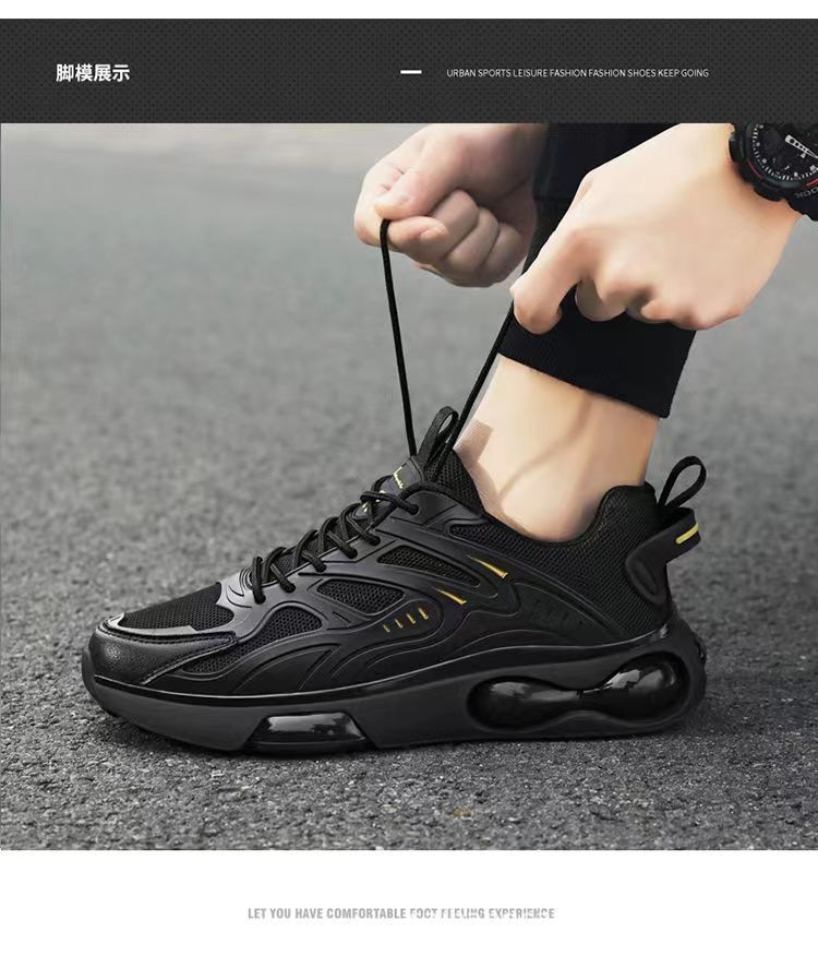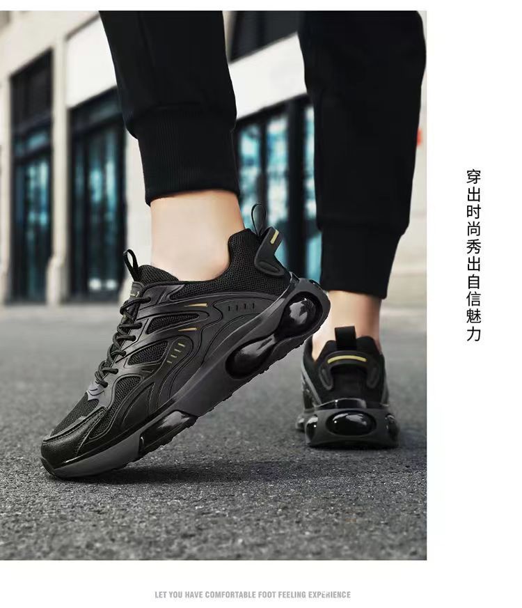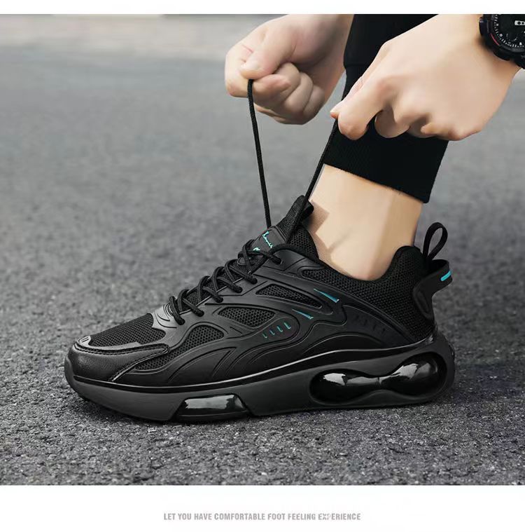 Zapatos deportivos para hombre, zapatos para correr transpirables de otoño para jóvenes, zapatos casuales de suela gruesa, zapatos de moda estilo guerrero negro para papá