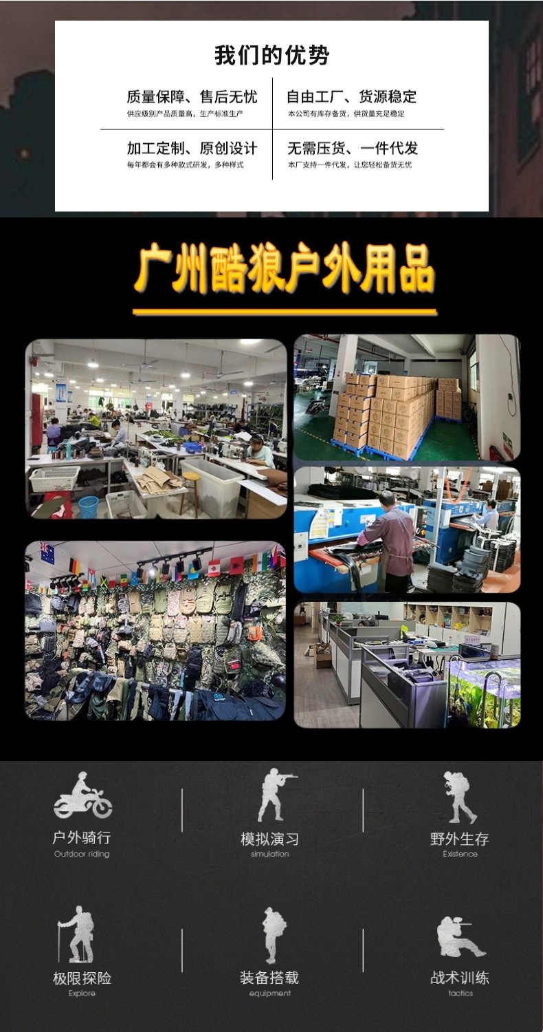 | Color | Negro,Caqui,Verde Ejército,Camuflaje CP,Camuflaje de Noche Oscura,Camuflaje FG |