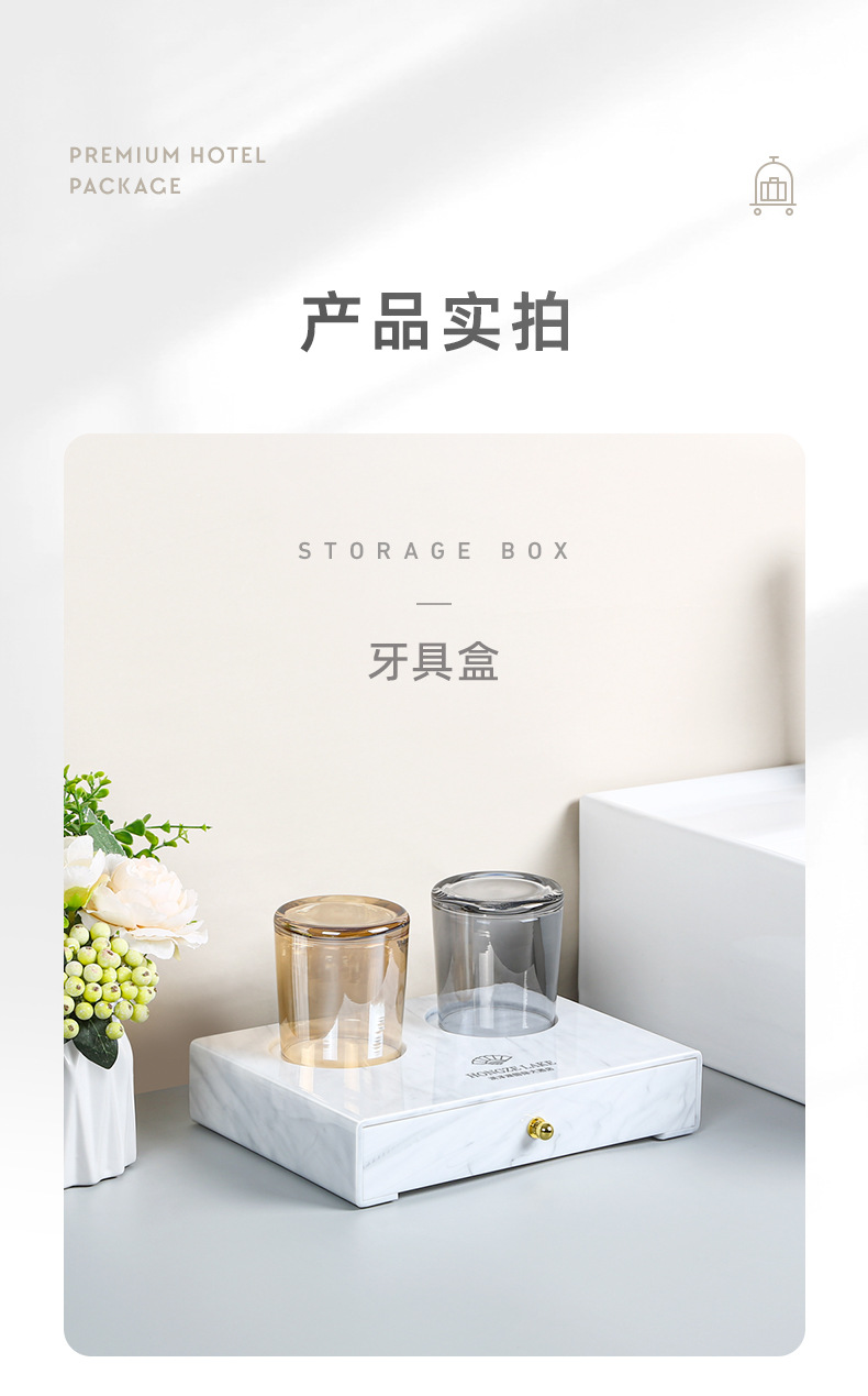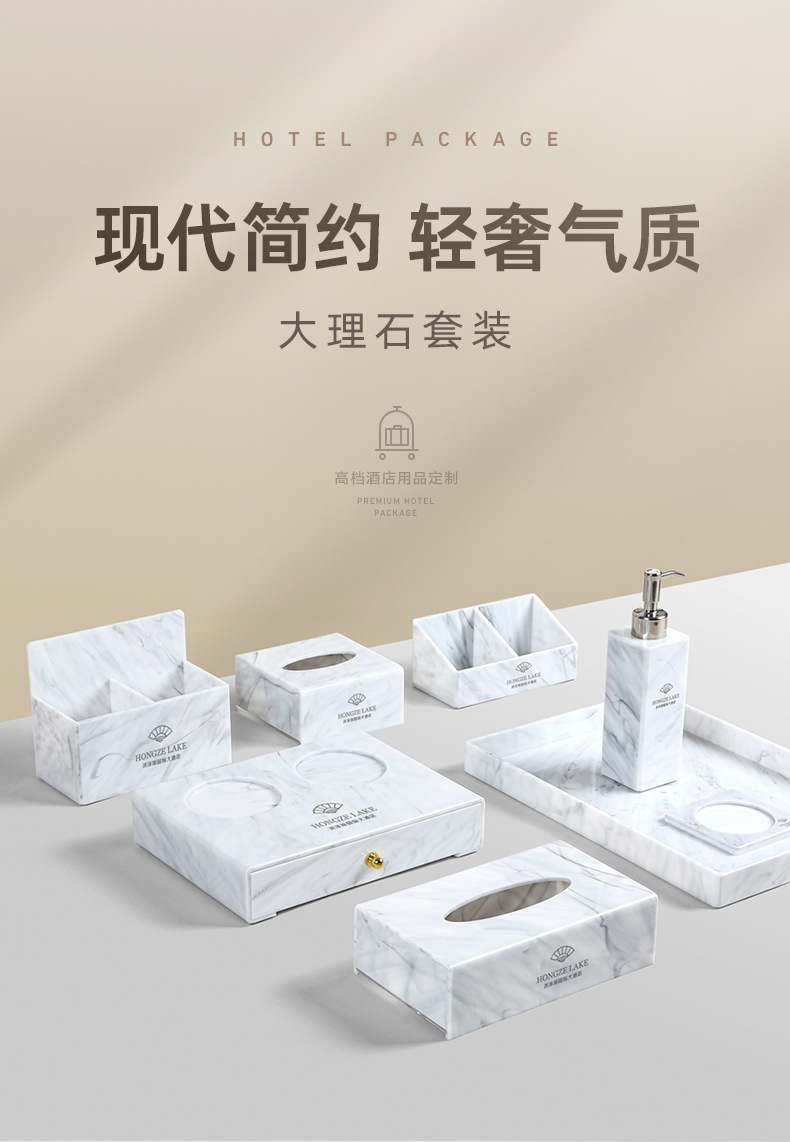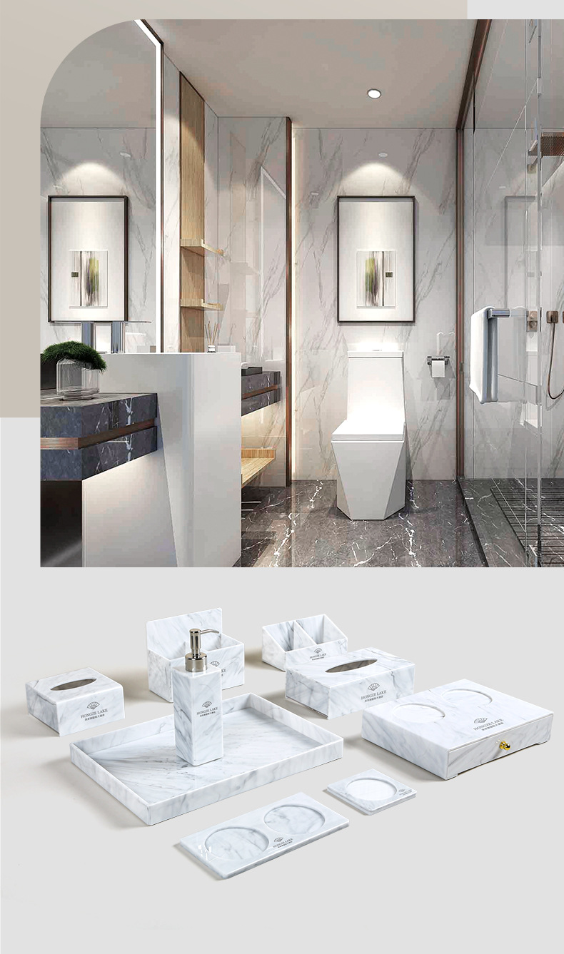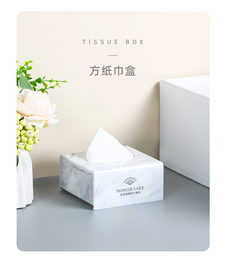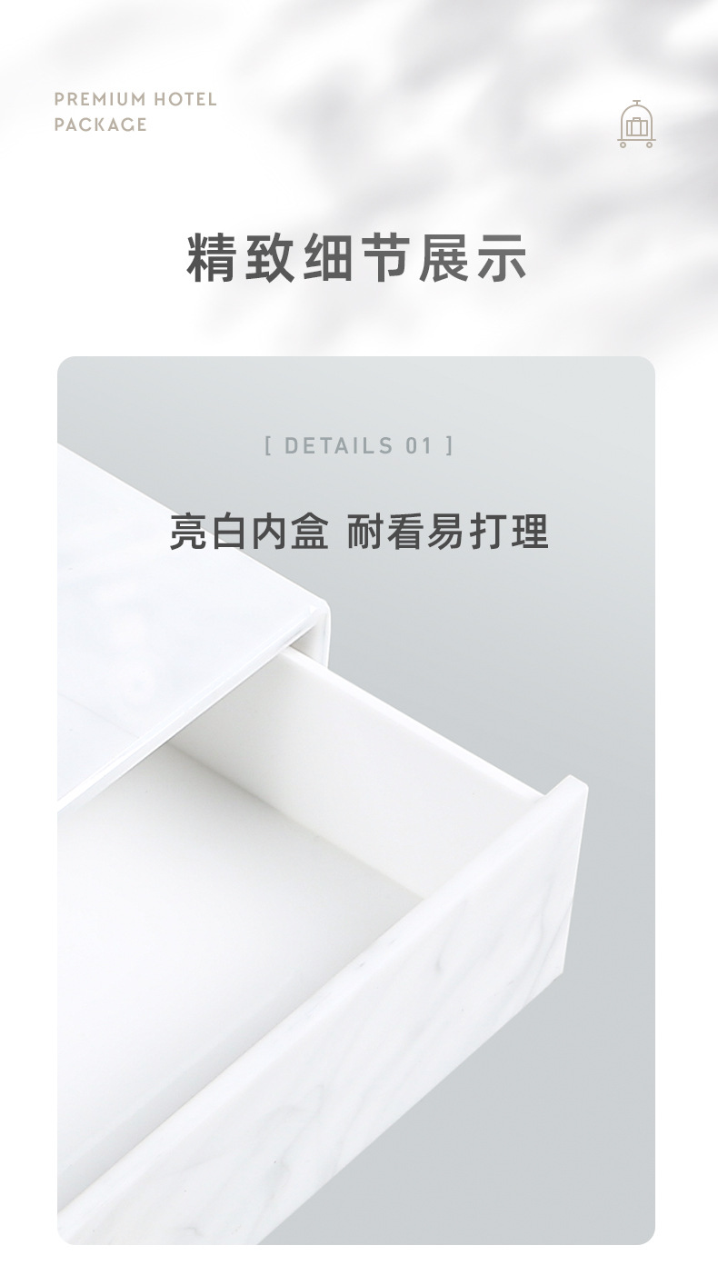 Caja de artículos de higiene de mármol acrílico caja de almacenamiento de artículos de higiene de hotel de alta calidad bandeja de toallas