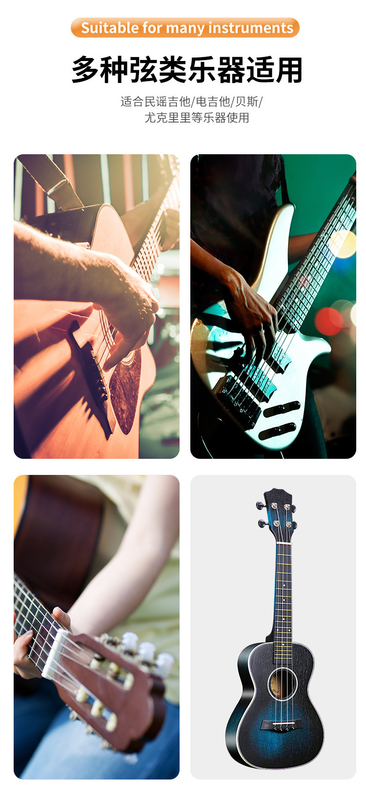 Guitarra de madera folk guitarra eléctrica ukulele universal de aleación de aluminio de madera