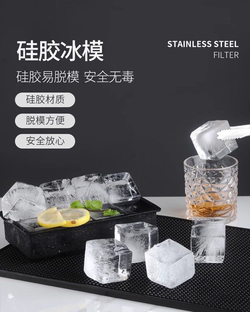 Venta caliente de Amazon 6 moldes de cubitos de hielo de silicona grandes, fáciles de desmoldar, películas de hockey sobre hielo congeladas rápidamente, moldes de fabricación de hielo