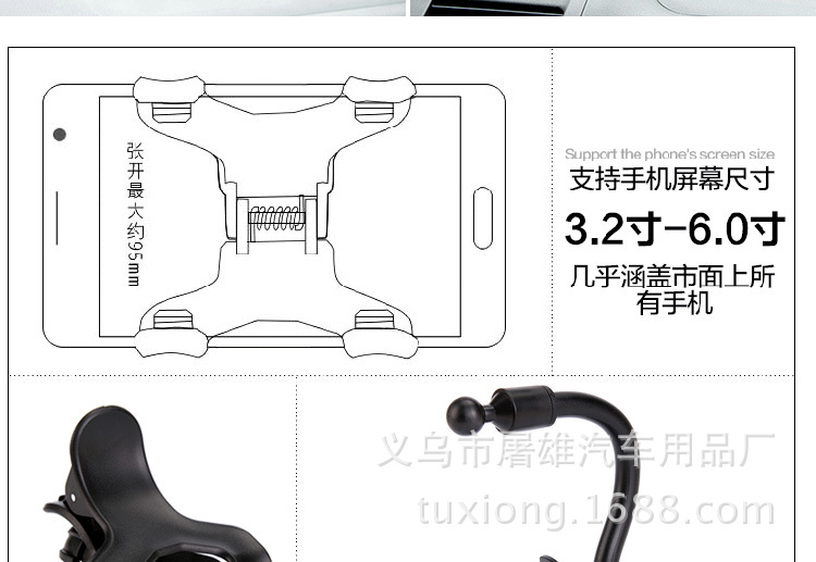 | Marca | Soporte de manguera de doble abrazadera, tipo pico de pato, 360 grados, doble abrazadera giratoria, soporte de navegación, apertura súper grande, soporte de doble abrazadera, clip para teléfono móvil en el automóvil, soporte de codo de doble abrazadera |
