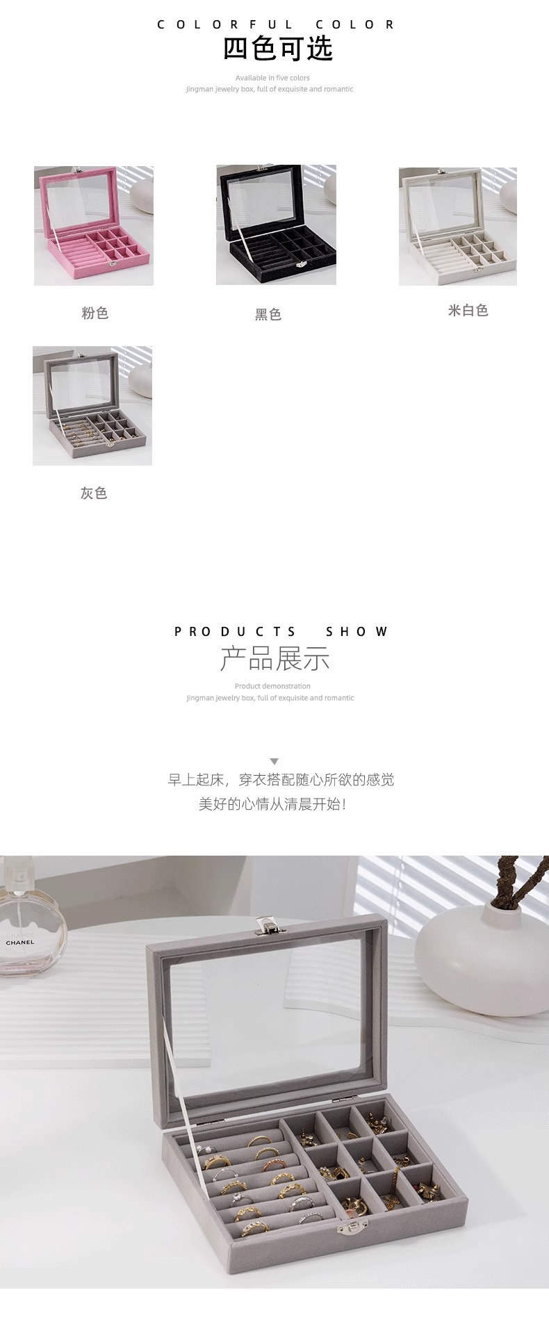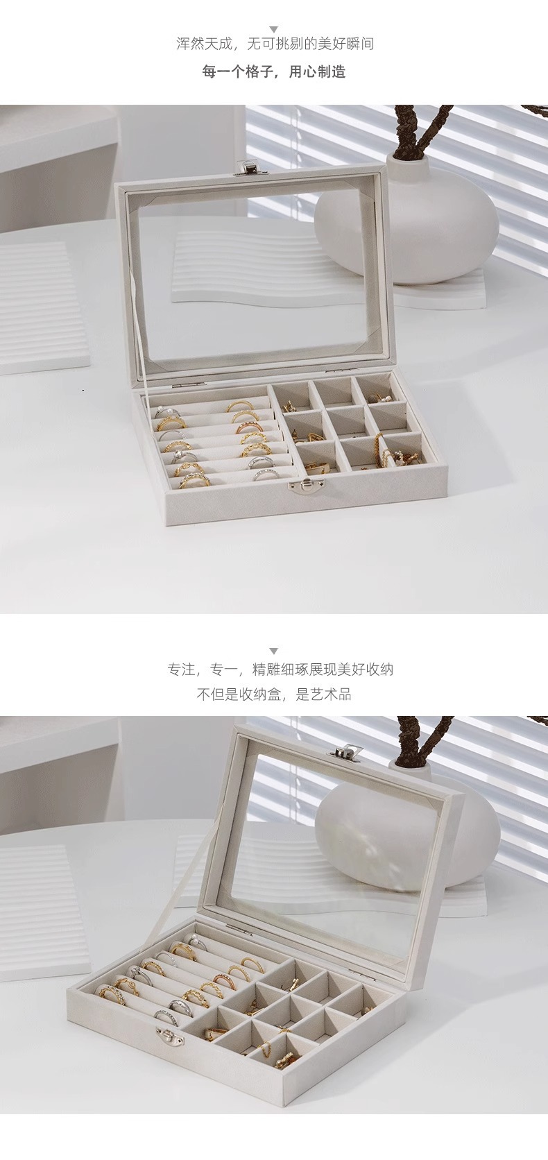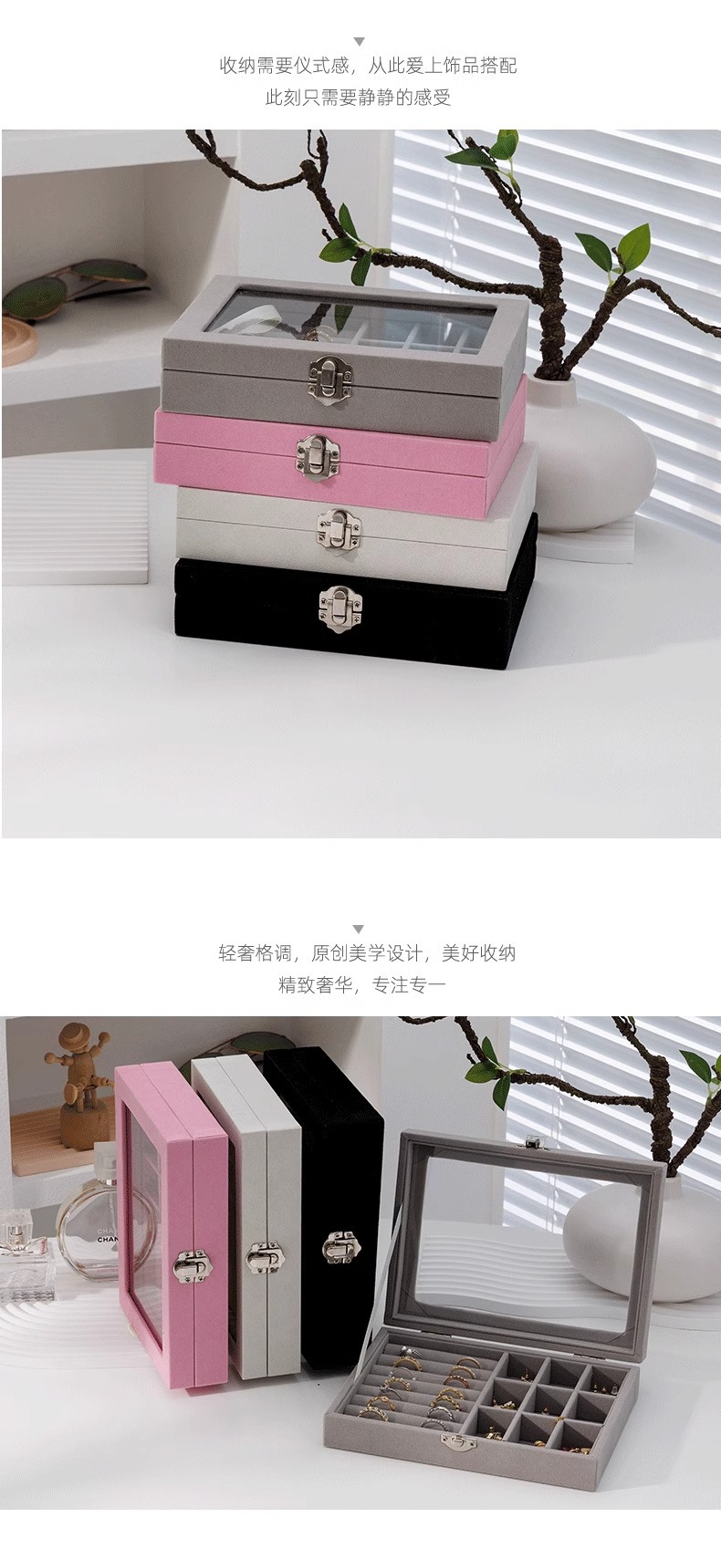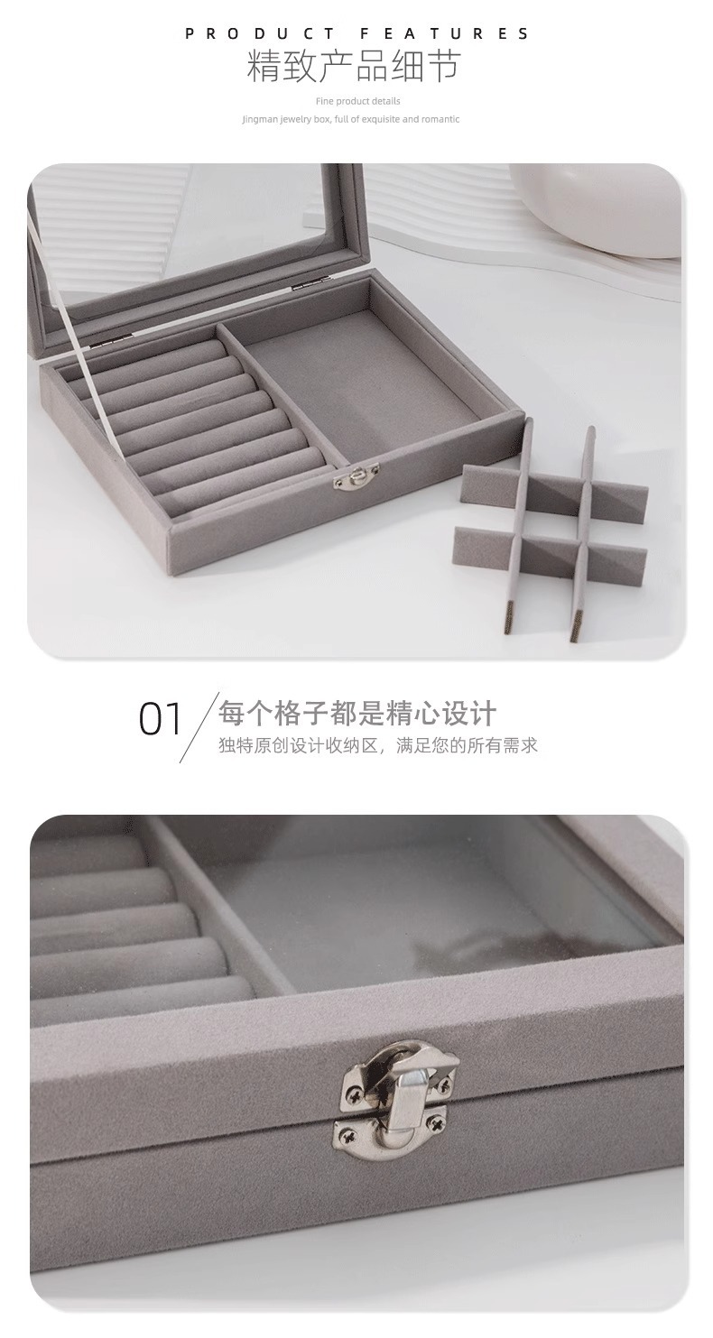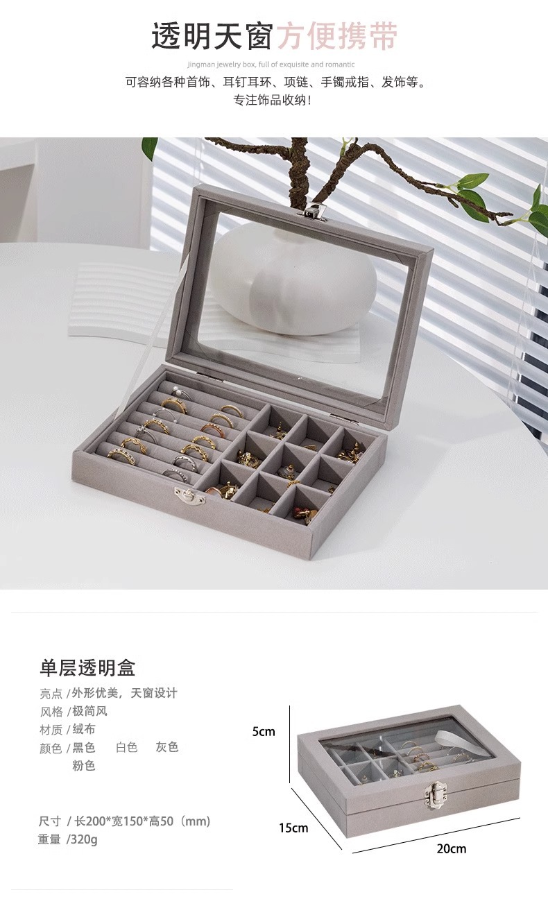 Joyero de alta gama Pendientes Collar Anillo Caja de almacenamiento simple de gran capacidad Caja de joyería exquisita de cuadrícula dividida portátil