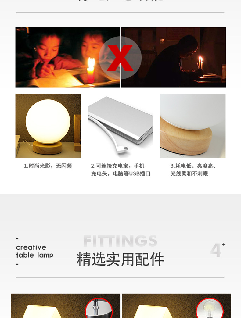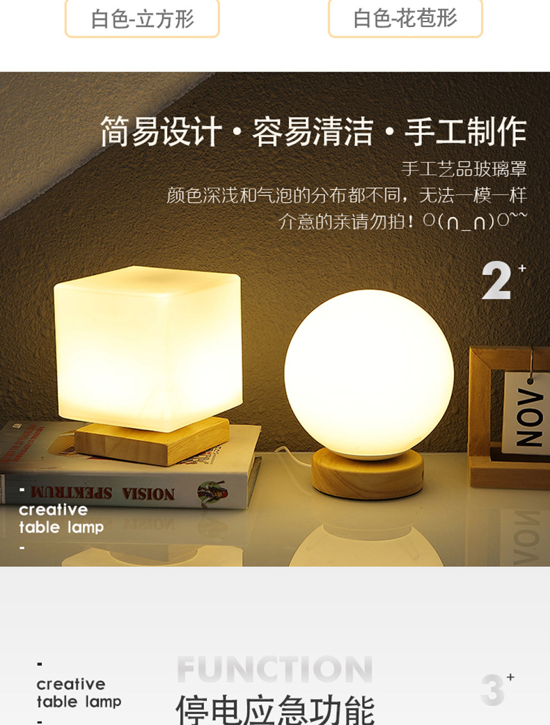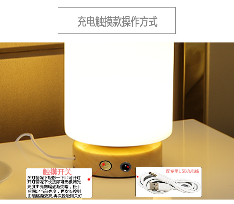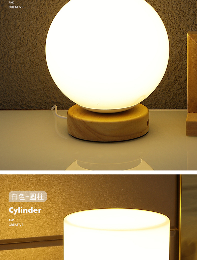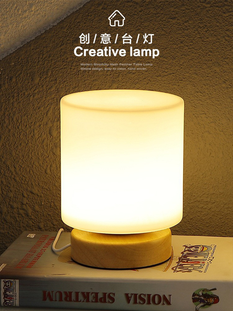 Decoración de madera maciza nórdica lámpara de mesa usb dormitorio lámpara de cabecera estudio casa de familia led luz de noche luz de ambiente creativa wabi-ji