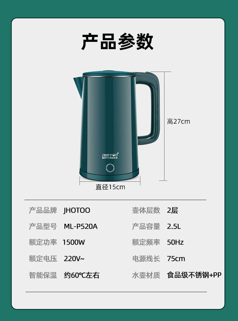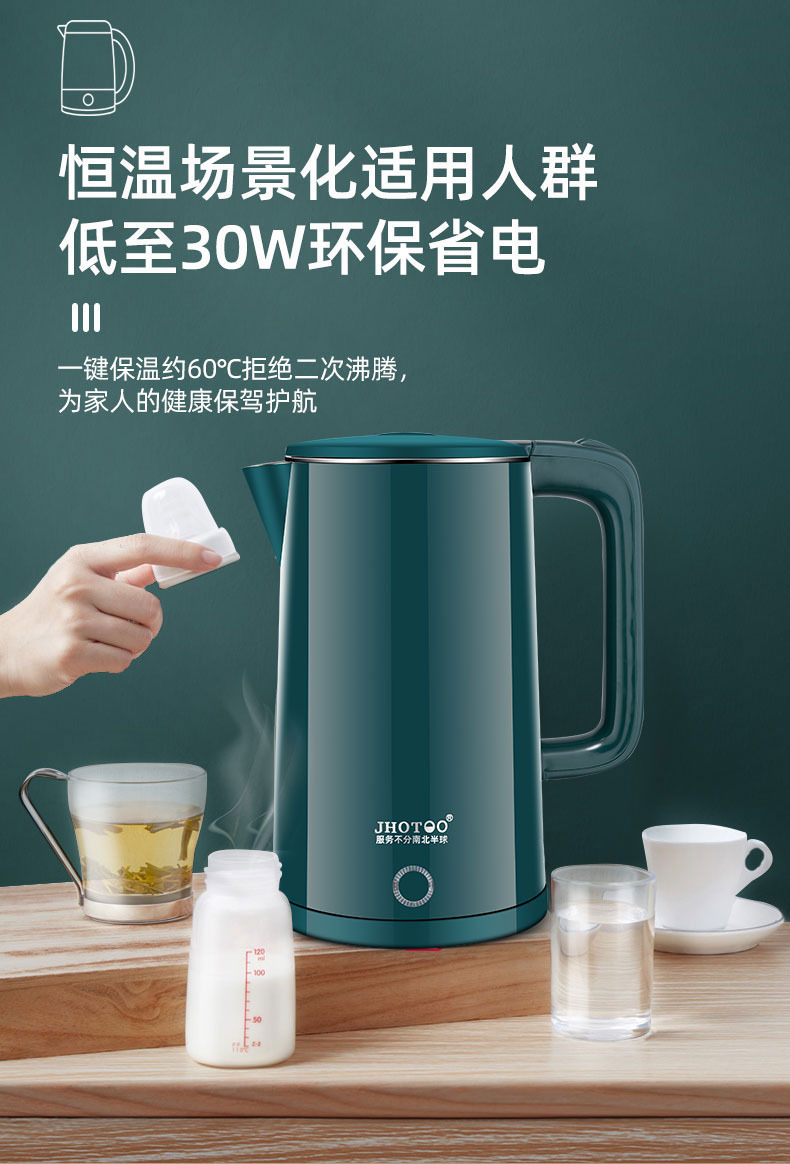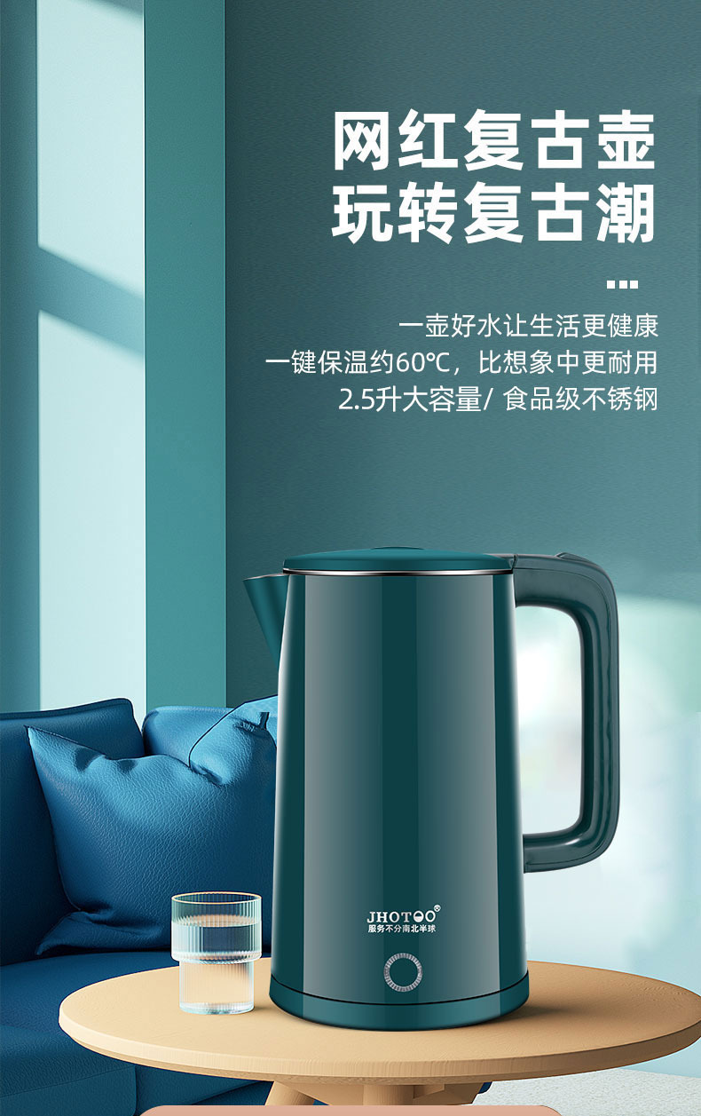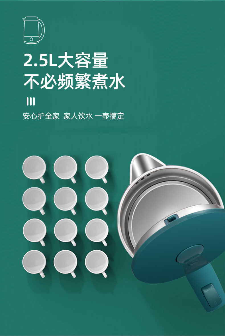 Hervidor eléctrico cuidadosamente seleccionado para uso doméstico, hervidor de acero inoxidable de 2,5 litros con aislamiento integrado, hervidor eléctrico con apagado automático.