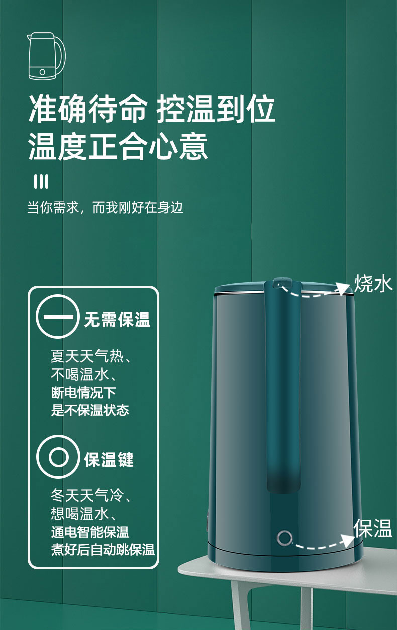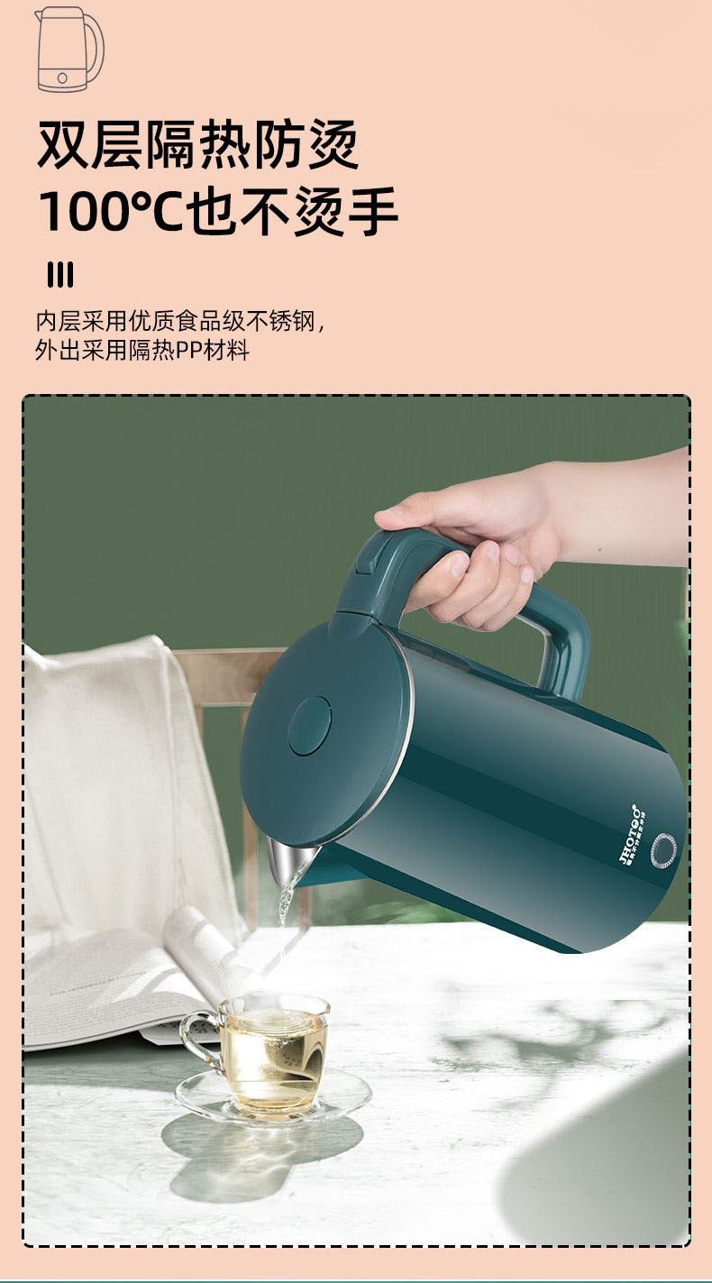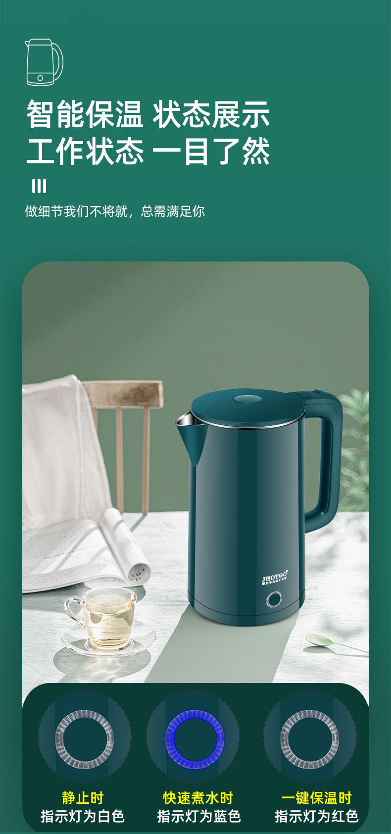 Hervidor eléctrico cuidadosamente seleccionado para uso doméstico, hervidor de acero inoxidable de 2,5 litros con aislamiento integrado, hervidor eléctrico con apagado automático.