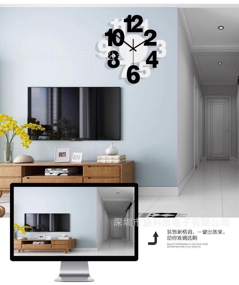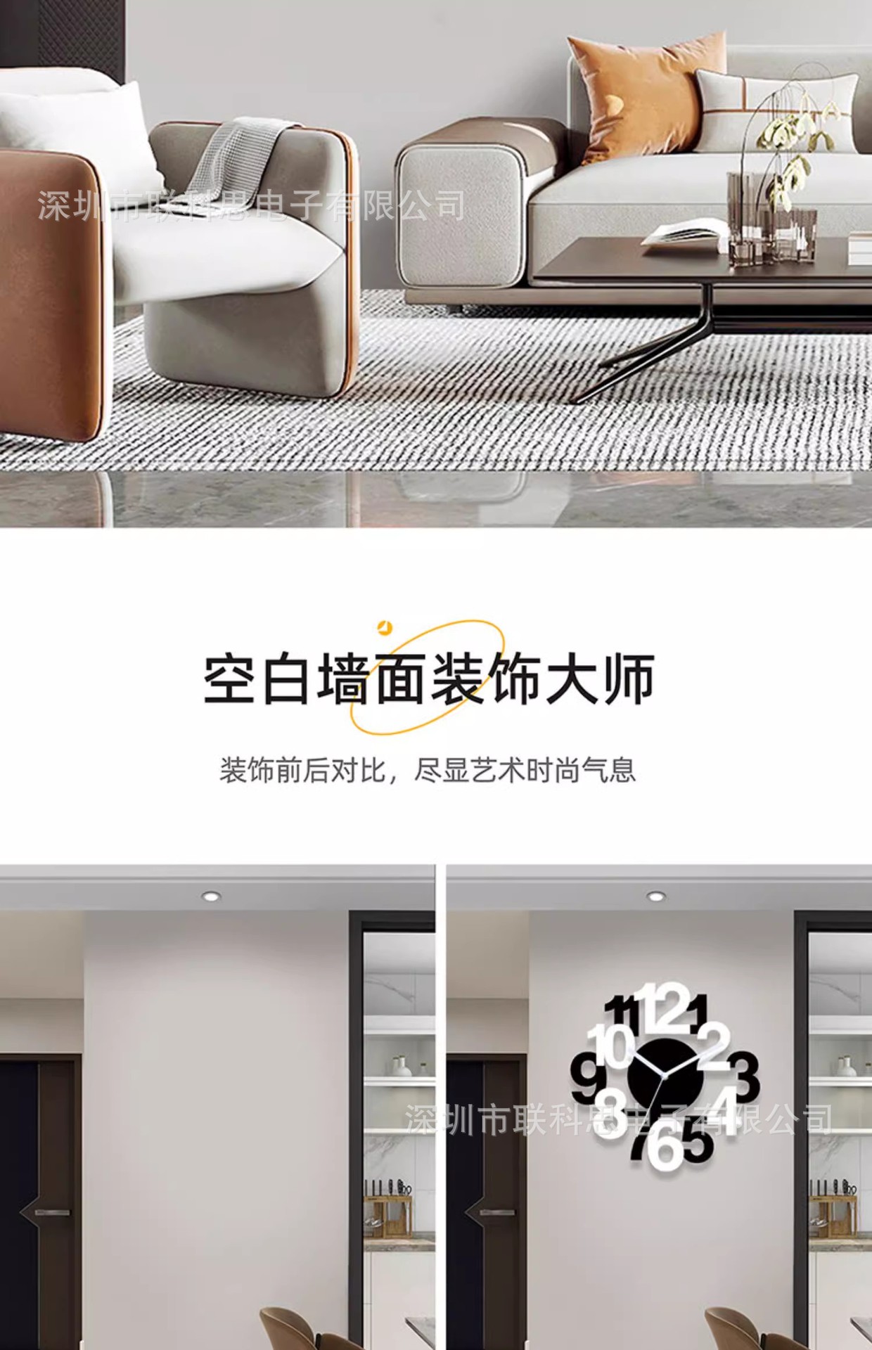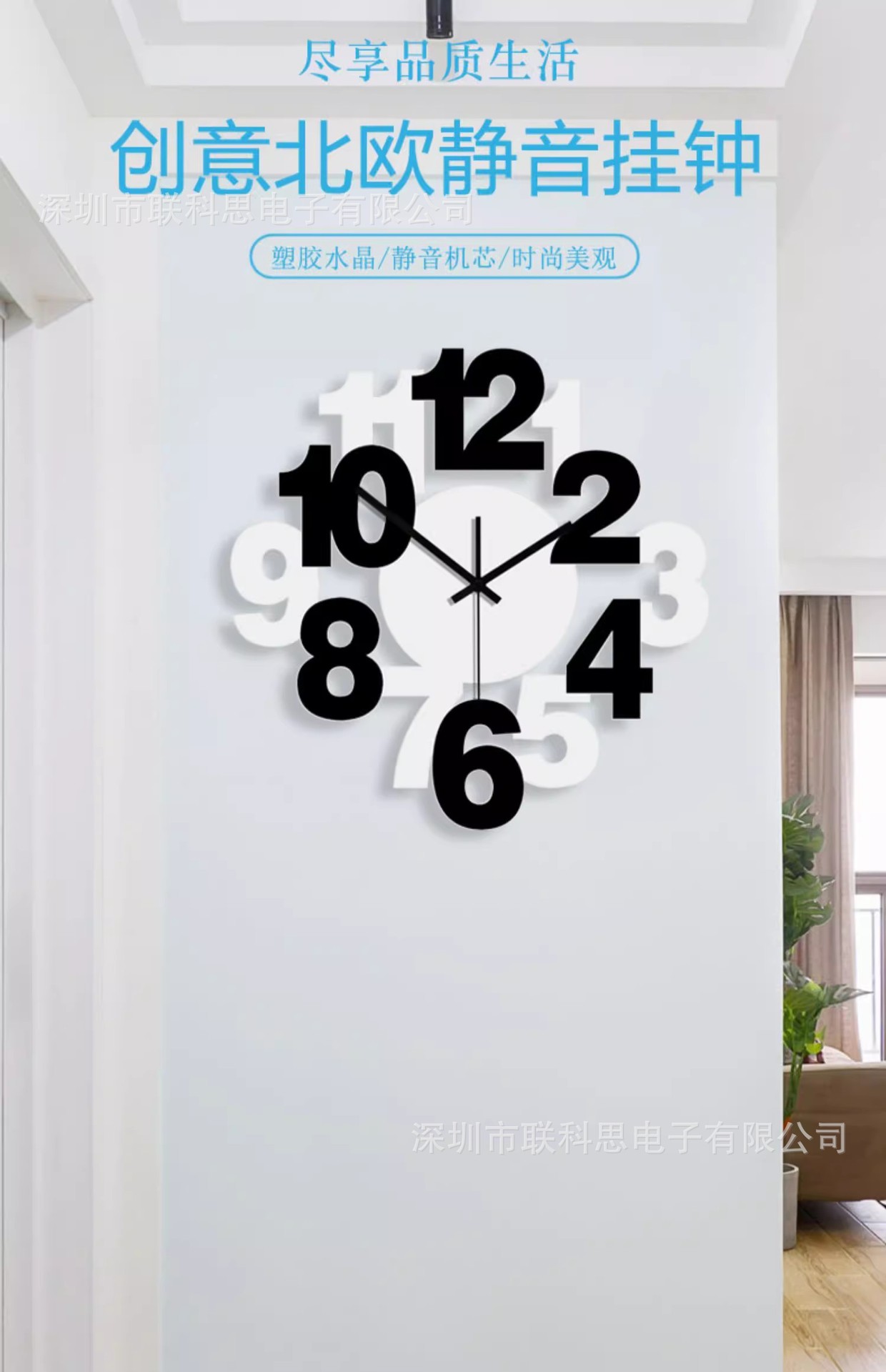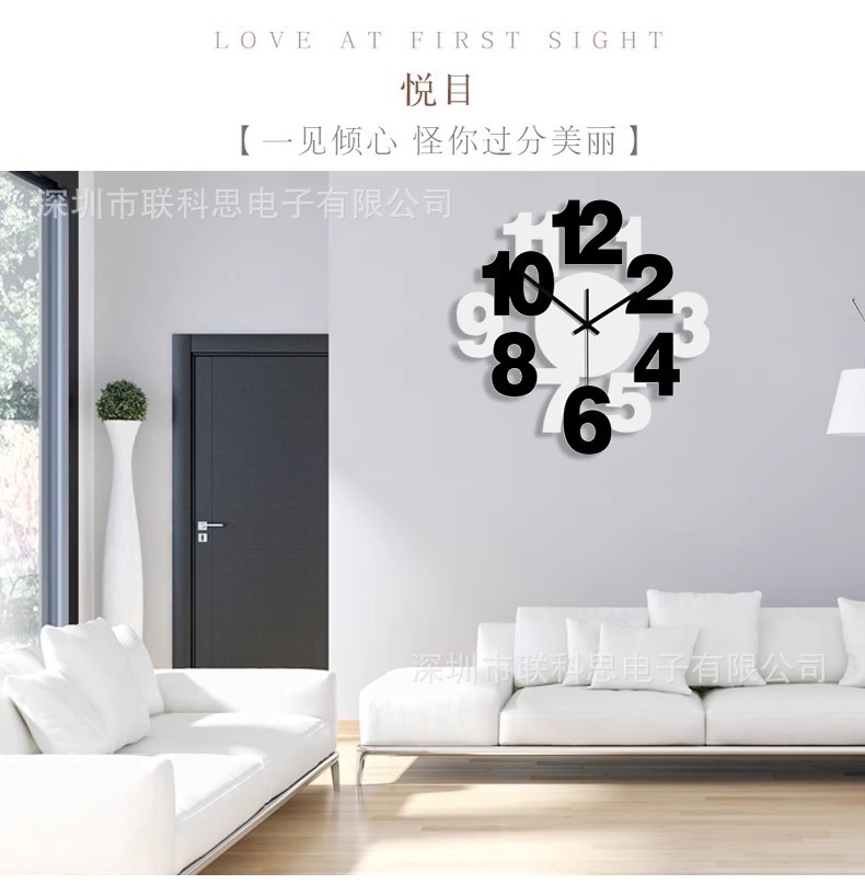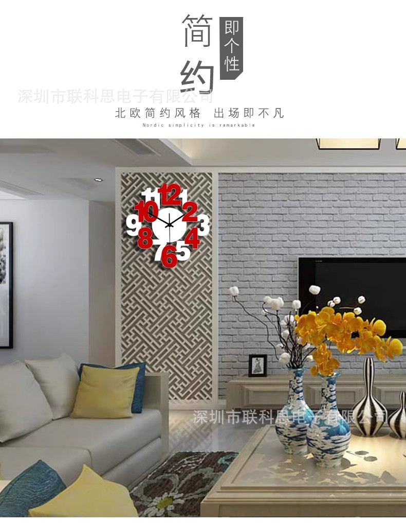Creativo tridimensional Reloj de pared digital sala de estar reloj decorativo simple moda reloj Punch mudo nórdico etiqueta de la pared