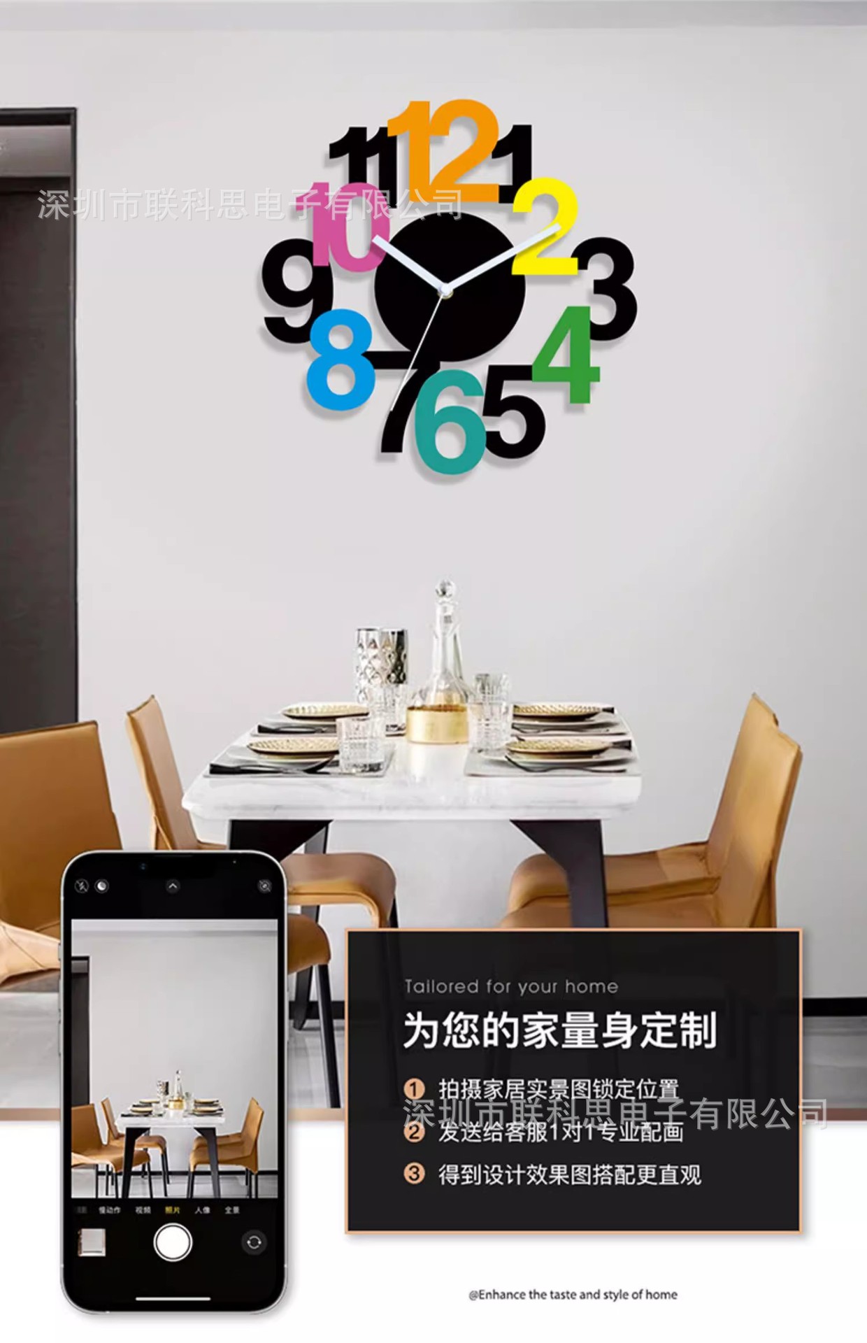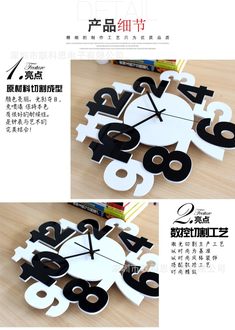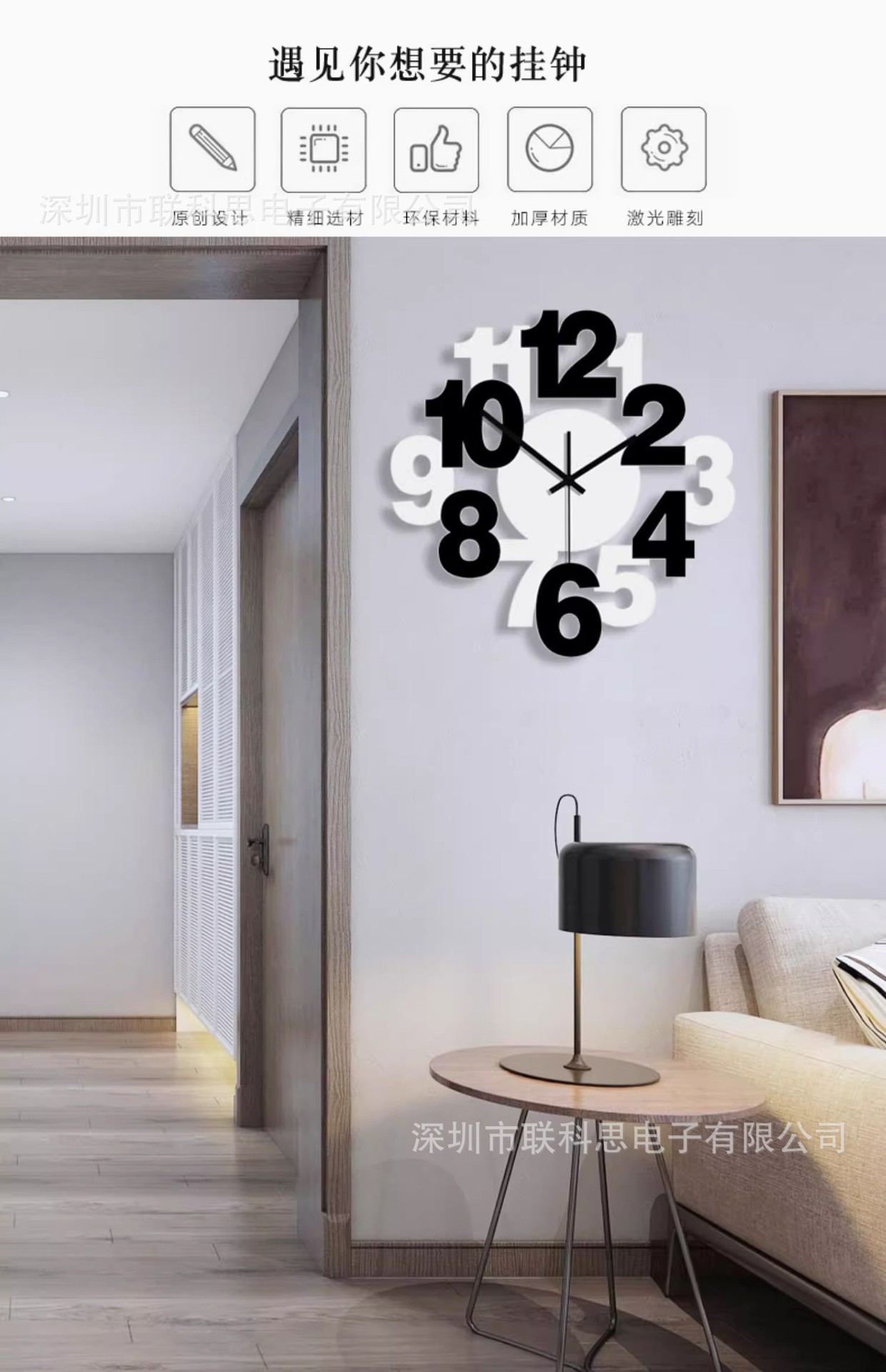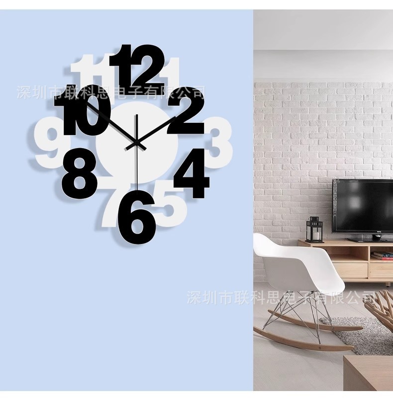 Creativo tridimensional Reloj de pared digital sala de estar reloj decorativo simple moda reloj Punch mudo nórdico etiqueta de la pared