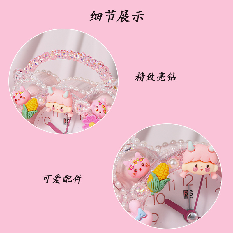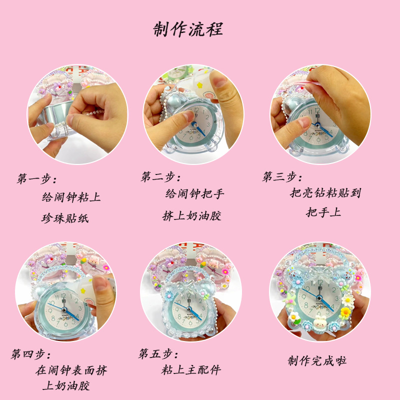 Reloj de alarma de cristal paquete de material de bricolaje para niños creativo de dibujos animados crema pegamento hecho a mano reloj de estudiante fabricante pequeño problema