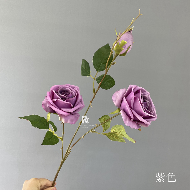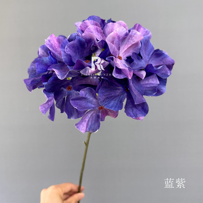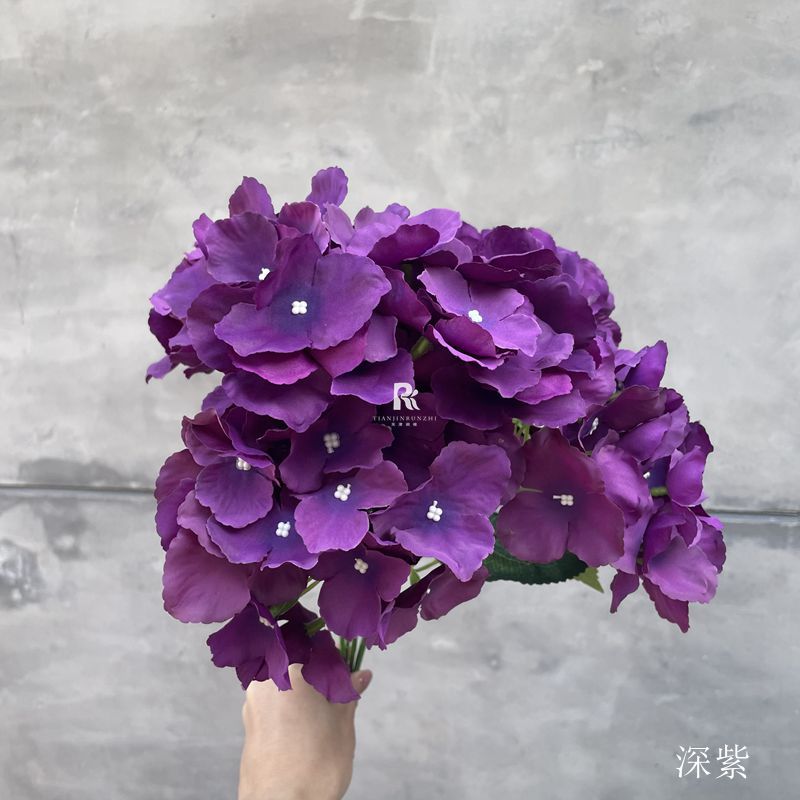 Flor de simulación de boda, flor de color púrpura oscuro, salsa, rosa púrpura, hortensia, flor falsa, decoración de boda, arreglo floral guiado a mano